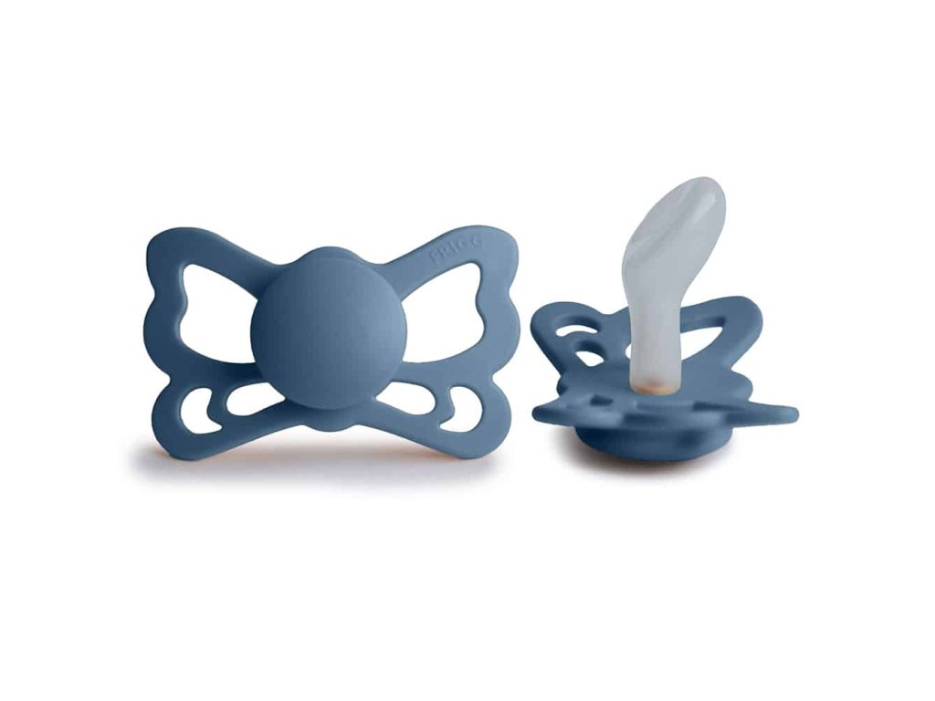 FRIGG Butterfly je anatomický cumlík s cumíkom, ktorý kopíruje tvar úst. Cumlík je navrhnutý tak, aby vyvíjal menší tlak na podnebie, ďasná a čeľuste a je to najšetrnejší typ cumlíka. Tým sa znižuje riziko krivých zubov a krivého zhryzu. Ortodontický dizajn je ideálny na podporu správneho vývoja detských zubov, čeľuste a podnebia.