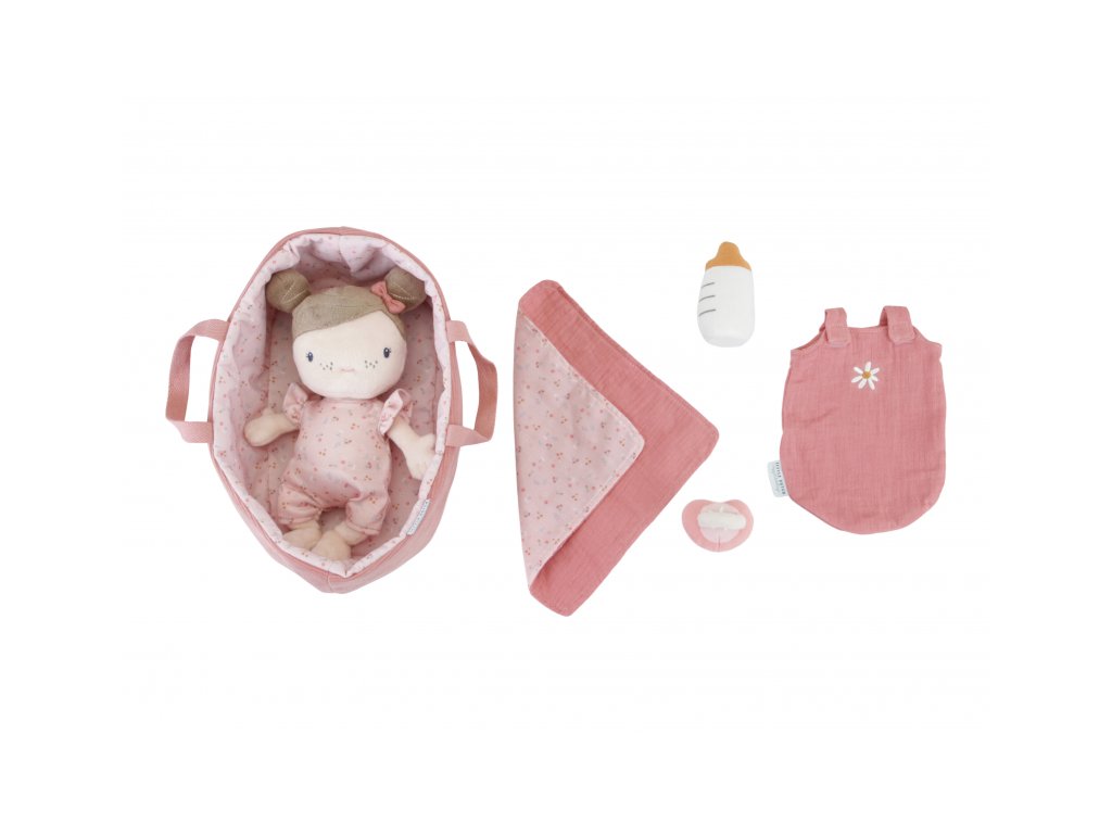 Zoznámte sa s bábätkom Baby Rosa. Nežná plyšová bábika sa chce maznať chovať a vďaka praktickému košíku na spanie si ju môžete vziať kamkoľvek so sebou. Starostlivosť o také bábätko dá zabrať, a deti sa tak hravou formou učia zodpovednosti. Rosu je potrebné pravidelne nakŕmiť alebo jej dať cumlík. Nesmie sa zabudnúť na výmenu plienky, na spanie treba Rosu uložiť do spacieho vaku a prikryť dekou, aby jej nebola zima.