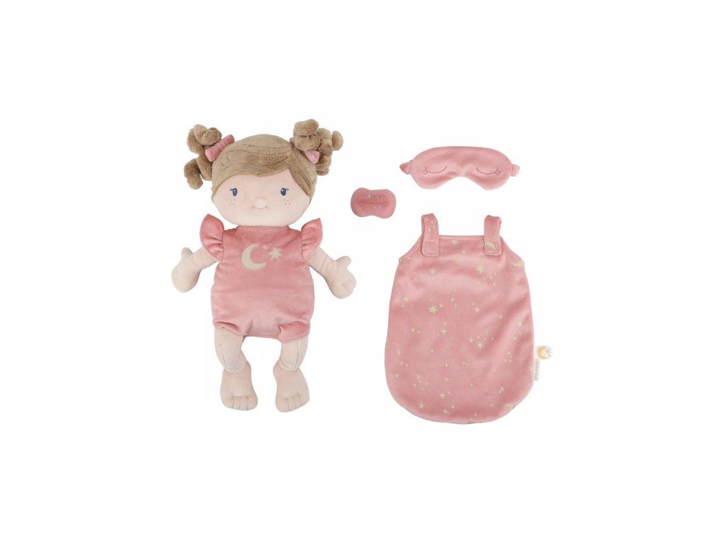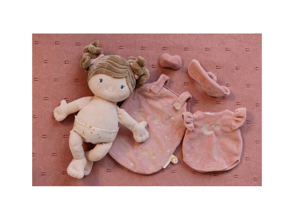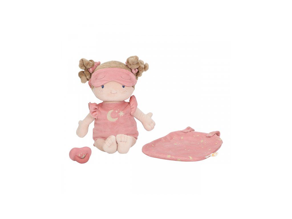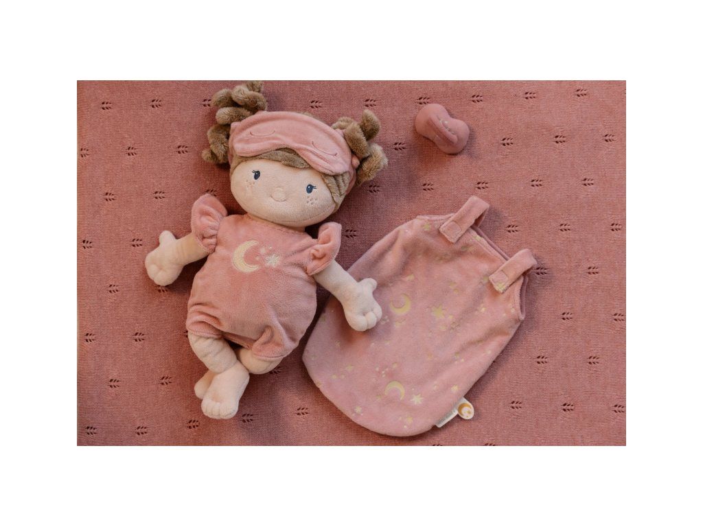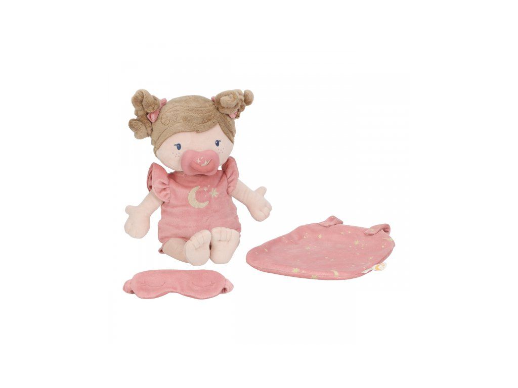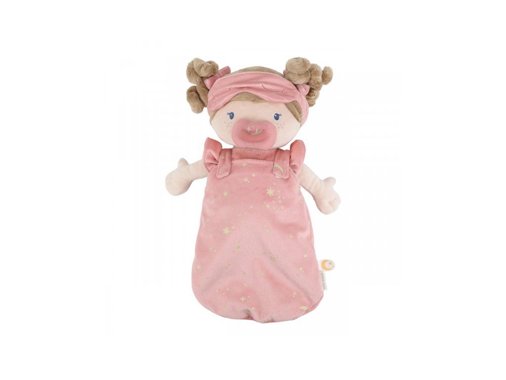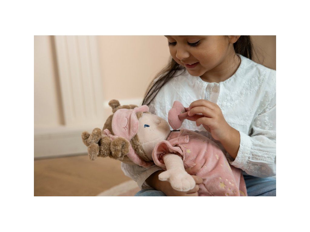 Nežná plyšová bábika Rosa z mäkkého jemného materiálu je pripravená na spanie, oblečená do pyžamka, vybavená plienkou, spacím vakom, cumlíkom aj clonou na oči. Je vhodná na hranie aj maznanie a bude sa s ňou aj krásne zaspávať!