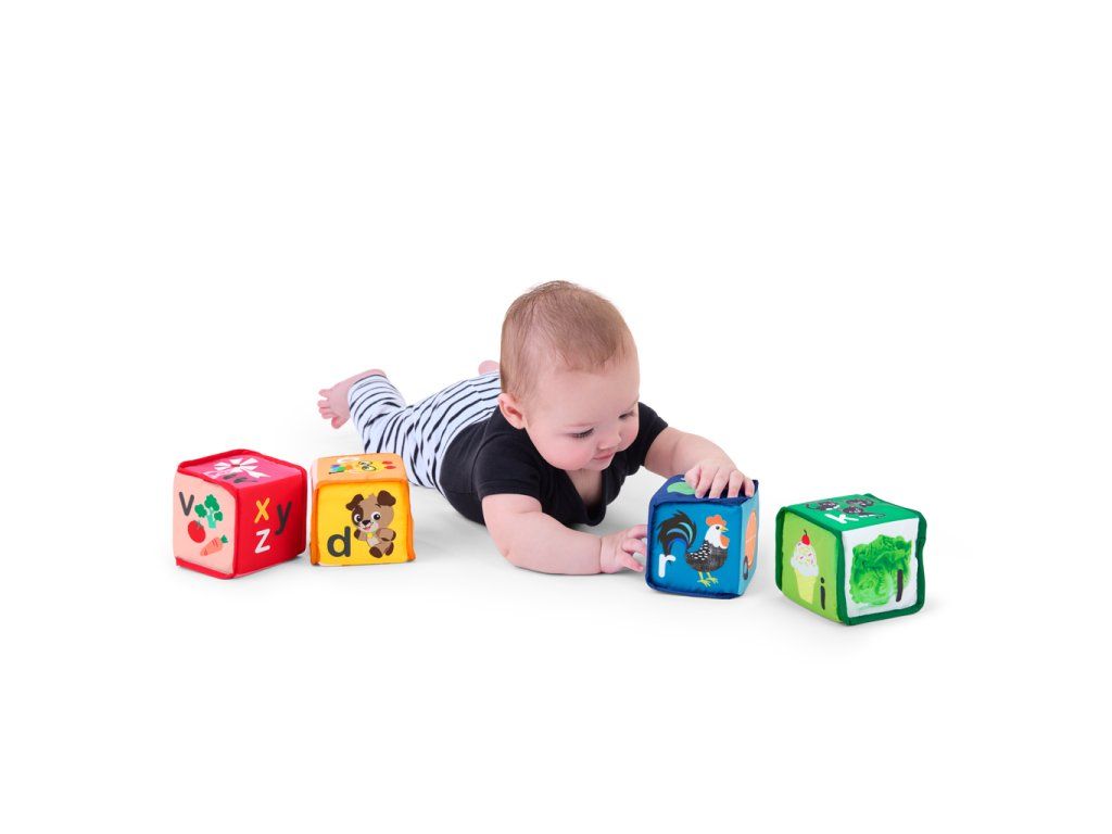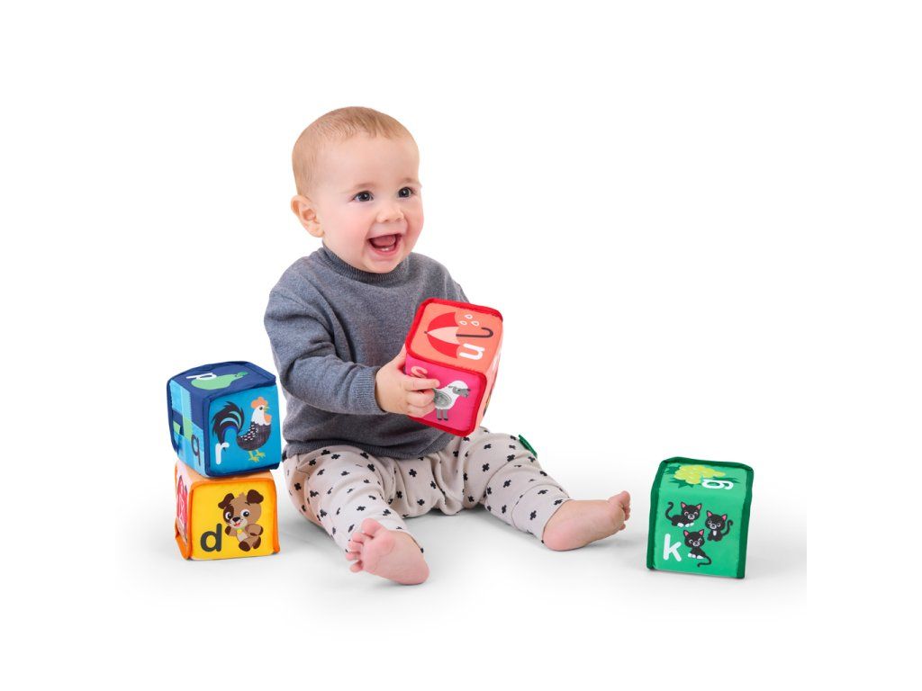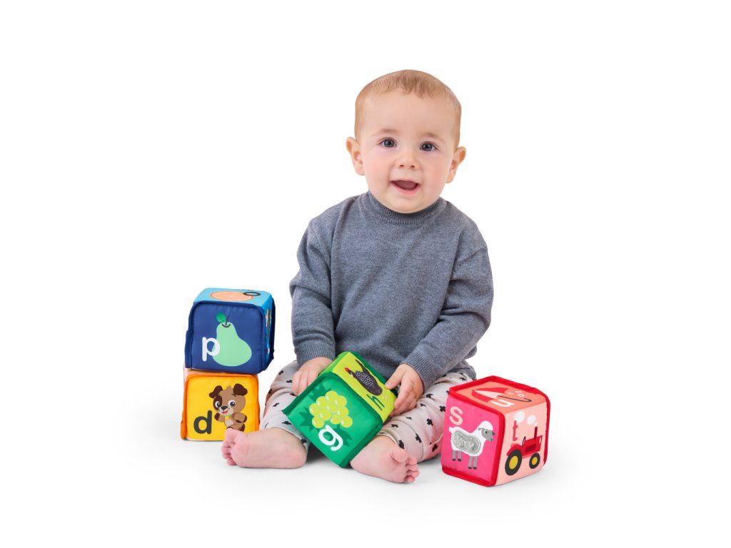 Objavovanie abecedy a zmyslového vnímania ešte nikdy nebolo také zábavné! Mäkké kocky sú navrhnuté pre malé rúčky, ktoré chcú stavať, hádzať, stláčať - jednoducho objavovať. Každá zo 4 kociek je plná farieb, zvukov a rôznych textúr, ktoré podporujú rozvoj jemnej motoriky a princípu „príčina a následok“ .