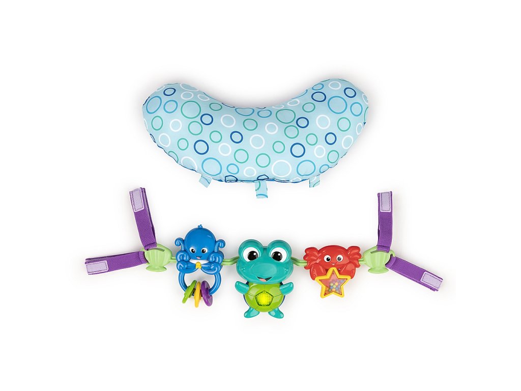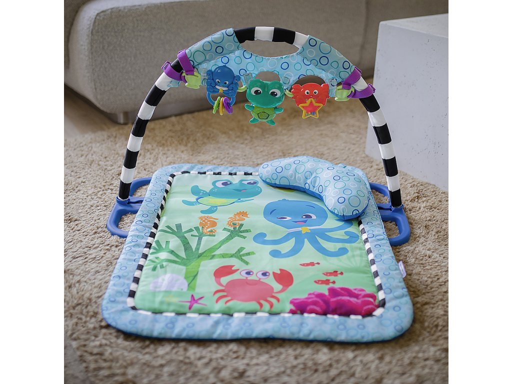Podložka Neptune's Discovery Reef™ Play Gym & Take-Along Toy Bar ponúka dojčatám hodiny hrania a učenia sa, od hry na brušku cez ležanie a hranie až po sedenie.