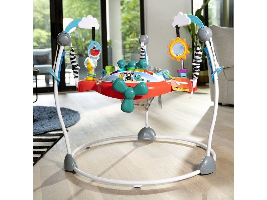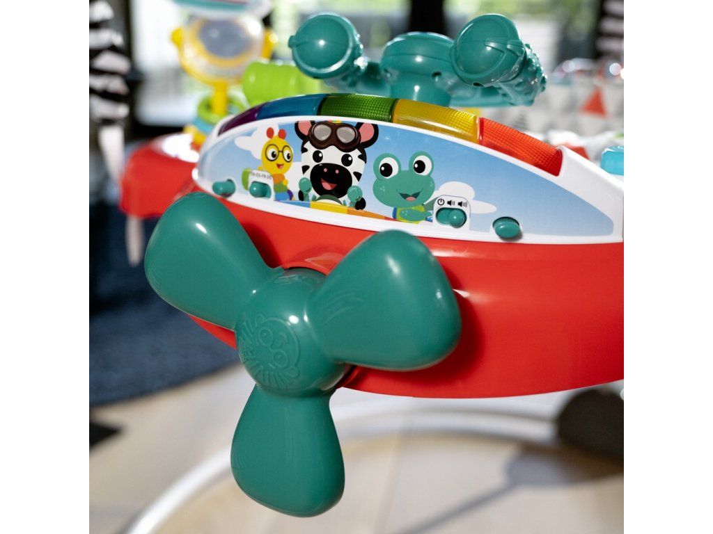 - skákadlo Baby Einstein Ocean Explorers Airplane Adventure s motívom lietadla, odmeňuje skoky dieťaťa hudbou a svetlom a rozvíja tak jeho hrubú motoriku