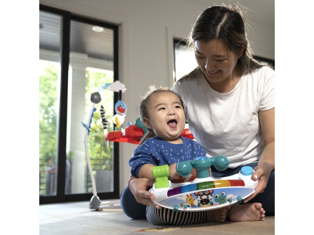 - hudba je všade okolo vďaka 360° otočnému sedadlu, kde sa dieťatko môže otáčať a odrážať sa
