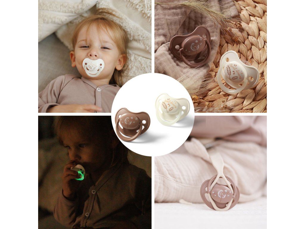 - Denný a nočný cumlík – v balení nájdete jeden klasický a jeden so svietiacou rúčkou, ktorý ľahko nájdete aj v tme