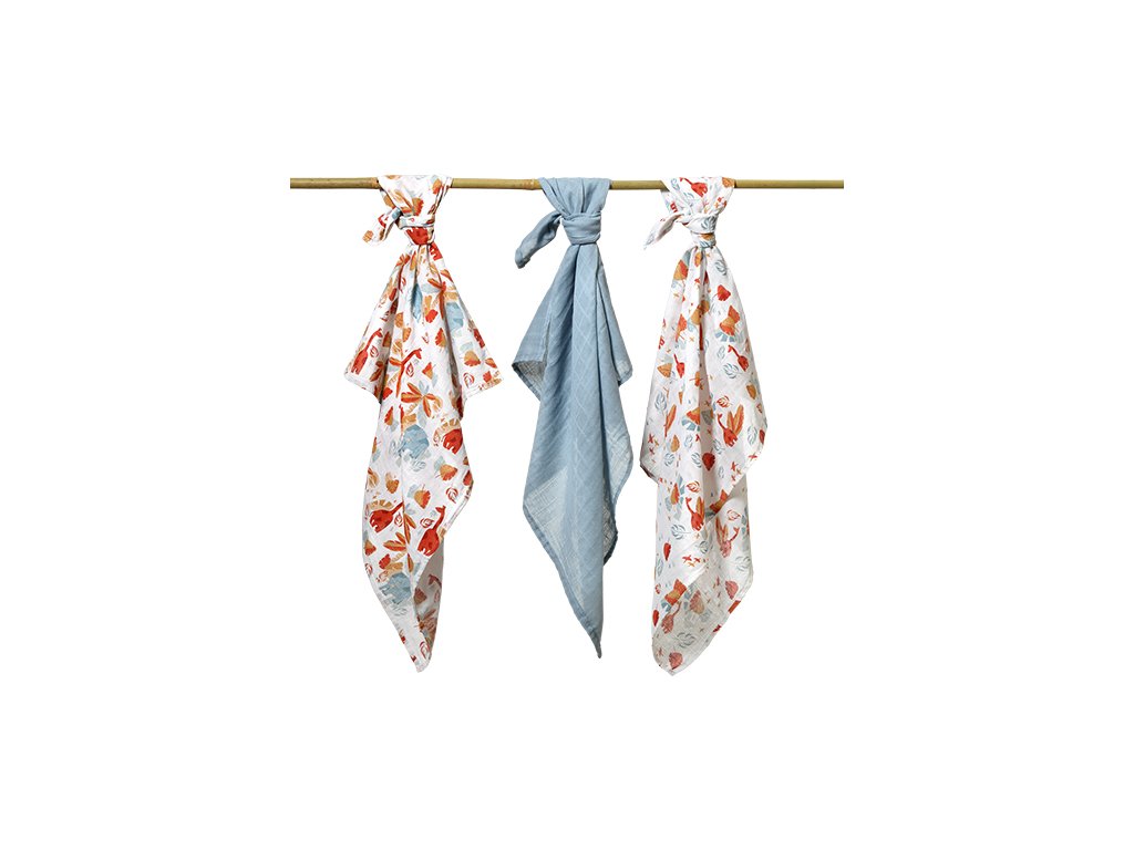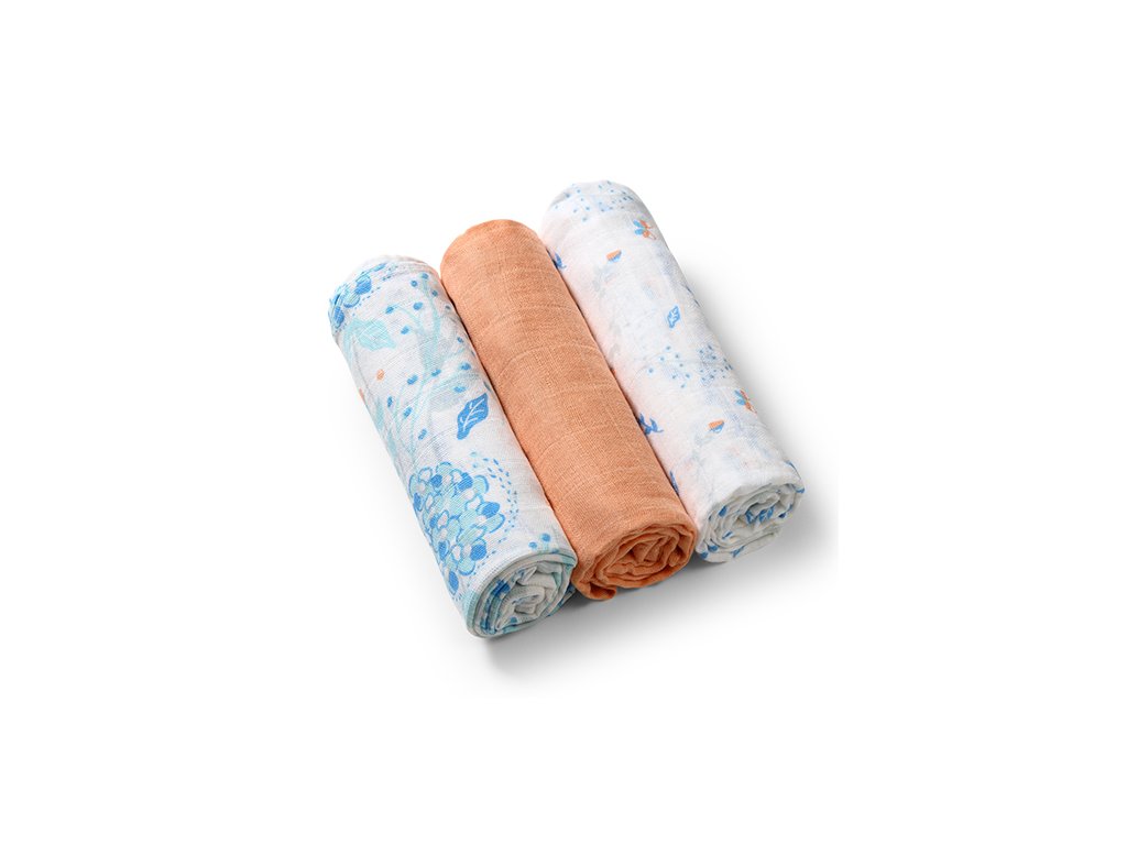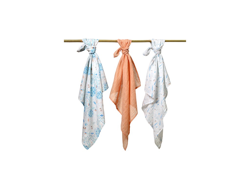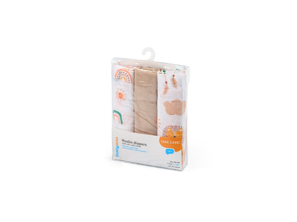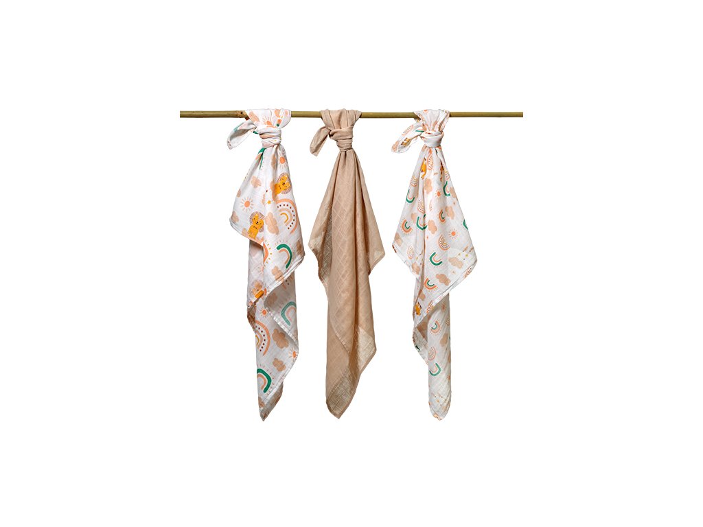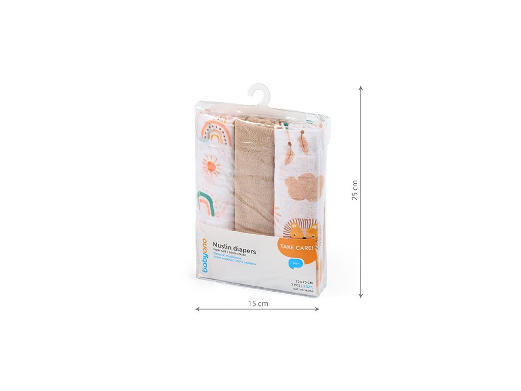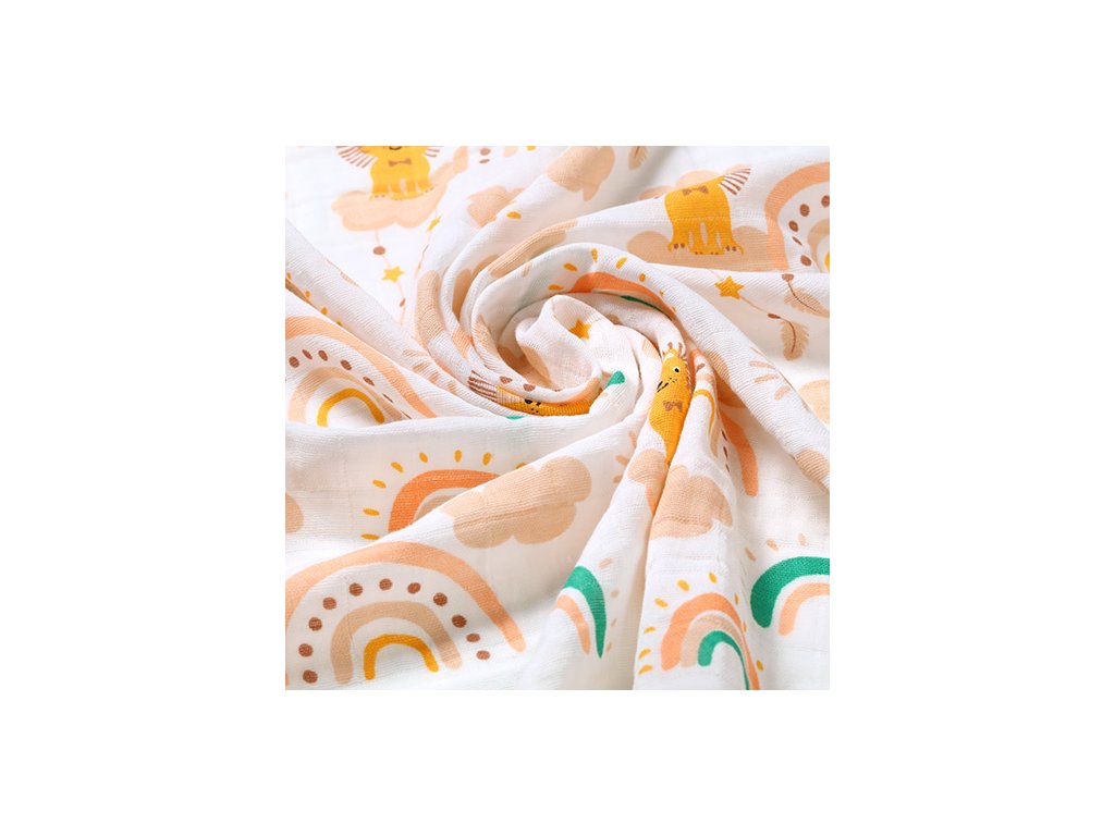 Mušelínové plienky sú vyrobené z dvojvrstvovej 100% bavlny, sú extrémne mäkké na dotyk a neobvykle vzdušné. Vzdušné mušelínové plienky sú vhodné od prvého dňa života vášho dieťatka. Dieťatko môžete mušelínovými plienkami zabaliť, zakryť alebo ich použiť ako plachtu či osušku. Sú vhodné aj na krytie pri dojčení.