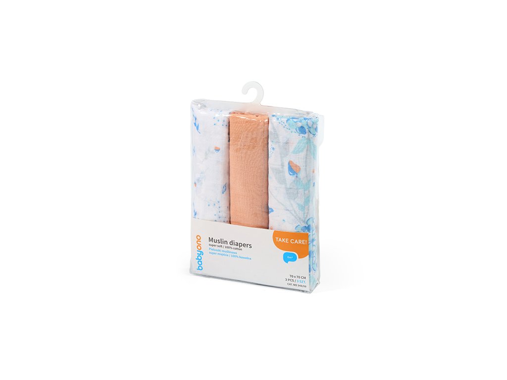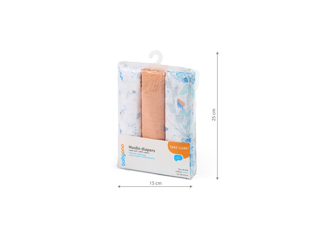BABYONO Plienky mušelínové Super soft 3 ks - modrá