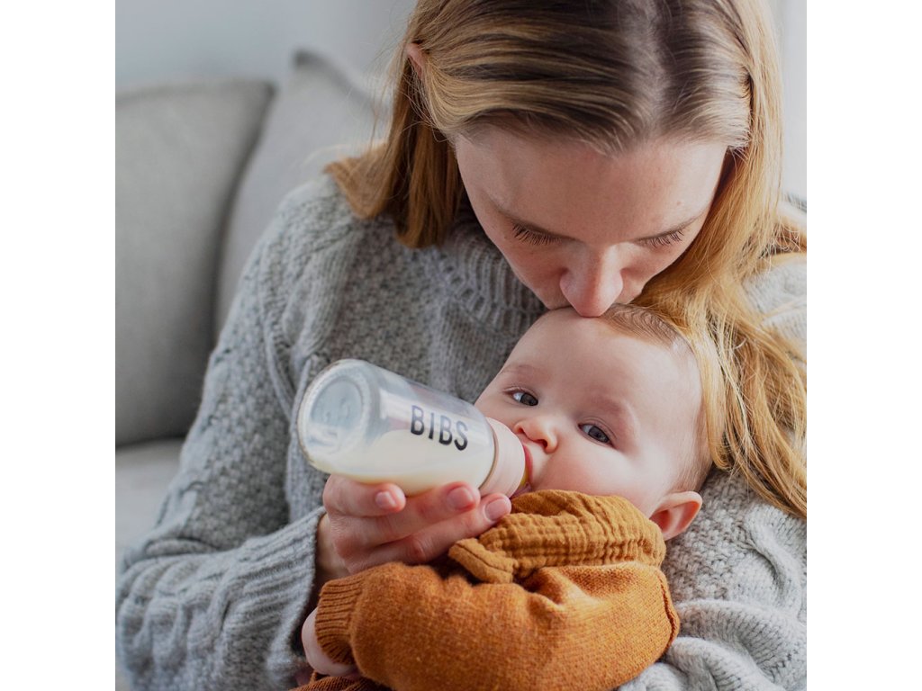 BIBS je obľúbená dánska značka s tradíciou výroby ikonických cumlíkov od roku 1978. Okrem cumlíkov BIBS ponúka aj pestrý prémiový sortiment pre najmenšie deti v minimalistickom škandinávskom dizajne a širokej farebnej palete. Všetky BIBS produkty sú garanciou najvyššej kvality detského sortimentu. BIBS Baby Bottle sklenené fľaše sú zárukou, že bábätká prídu pri kŕmení do kontaktu len s kvalitným prémiovým a bezpečným materiálom. Sú vyrobené z prvotriedneho borosilikátového skla, ktoré do nápojov neuvoľňuje žiadne škodlivé látky či mikroplasty, je mimoriadne trvácne a extrémne odolné voči teplu. Okrem najkvalitnejších materiálov vynikajú BIBS dojčenské fľaše aj svojím nadčasovým retro dizajnom, v ktorom je dokonale prepracovaný každý detail. Súčasťou balenia sú praktické doplnky v obľúbených BIBS farbách. Vyrobené z recyklovateľného borosilikátového skla, mimoriadne trvácne a tepelne odolné. Neuvoľňuje mikroplasty a iné škodliviny do mlieka. Stabilný materiál odolný voči chemickej degradácii aj voči reakciám s kyslými zložkami jedla. Okrúhly tvar cumlíka, ktorý deti poznajú u BIBS Colour cumlíkov. Obľúbená chuť a vôňa prírodného kaučuku. Unikátny antikolikový ventil v tvare srdiečka. Odporúčané pôrodnými asistentkami na podporu prirodzeného dojčenia. Praktické doplnky súčasťou balenia (tesniaci disk, skladací lievik). Všetky časti zo 100% bezpečného potravinárskeho materiálu bez obsahu BPA, PVC a ftalátov. 100% recyklovateľné. CUMLÍK: Cumlíky sú vyrobené z prírodného kaučuku, ktorý je u detí mimoriadne obľúbený vďaka svojej špecifickej chuti a vôni. Ich okrúhly tvar typický pre cumlíky BIBS Colour podporuje podobné umiestnenie jazyka a správnu aktívnu techniku satia ako pri dojčení. Dovoľuje tak jednoducho kombinovať dojčenie s kŕmením z fľaše. Unikátny antikolikový ventil v tvare srdiečka zabráni, aby sa do bruška bábätka dostával vzduch a napomáha tak pokojnému kŕmeniu bez bolesti bruška a výskytu kolík. OBSAH BALENIA: Sklenená fľaša 110ml / 225ml. Vrchnák. Objímka. 1 cumlík z prírodného kaučuku (pomalý prietok). Tesniaci disk – umiestnite pod objímku pri prenose, na cestách, do tašky, či kočíka. Skladací lievik – pre rýchle a jednoduché naplnenie fľaše. MIX&MATCH: V predaji je buď kompletná sada dojčenskej fľaše (110 ml alebo 225 ml), ktorá vám poskytne všetko, čo potrebujete, aby ste mohli začať, alebo si môžete zakúpiť samostatnú náhradnú sklenenú fľašu (110 ml alebo 225 ml) a samostatný set doplnkov na fľašu a vyskladať si tak veľkosť a farbu podľa vašich preferencií. V ponuke sú samozrejme aj náhradné cumlíky. BIBS Baby Bottle spĺňa nasledujúce normy:EN 1400+A2EN 14350:2020EN 71-3-2019DIN EN 12868 2017-04DIN EN 1186 2002-07DIN CEN/TS 13130-23 2005-05DIN EN ISO 11885 2009-09 ČISTENIE: Pred prvým použitím výrobok rozoberte a všetky časti sterilizujte ponorením do vriacej vody po dobu 5 minút. Sterilizáciu neskôr opakujte podľa potreby. Čistite ručne s použitím jemného saponátu a kefy na fľaše, dôkladne opláchnite. Fľašu a plastové časti (cumlík nie!) je možné umývať v umývačke riadu. Po umytí nechajte všetky časti dôkladne vyschnúť. Cumlík nevystavujte priamemu slnečnému žiareniu ani iným zdrojom tepla. Z hygienických a bezpečnostných dôvodov cumlík vymeňte za nový každých 4-6 týždňov. Plastové časti a cumlík neohrievajte/nesterilizujte v mikrovlnke. V prípade ohrevu nápoja v mikrovlnke použite len samostatnú sklenenú fľašu a nezabudnite pred kŕmením obsah premiešať a skontrolovať jeho teplotu.