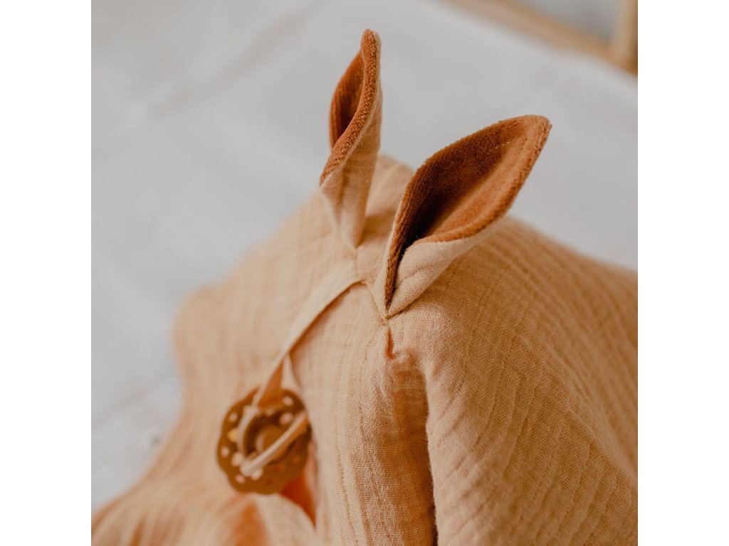 BIBS je obľúbená dánska značka s tradíciou výroby ikonických cumlíkov od roku 1978. Okrem cumlíkov BIBS ponúka aj pestrý prémiový sortiment pre najmenšie deti v minimalistickom škandinávskom dizajne a širokej farebnej palete. Všetky BIBS produkty sú garanciou najvyššej kvality detského sortimentu. BIBS Kangaroo maznáčik je vyrobený zo 100% organickej BIO bavlny. Z jednej strany je to bavlnený mušelín, jemný, hebký a priedušný, z druhej strany česaná prémiová bavlna, mäkučká a príjemná na dotyk. Kvalitu použitého materiálu spoznáte na prvý dotyk. Roztomilé ušká kengurky dopĺňa praktické pútko s krúžkom na upevnenie cumlíka, vďaka ktorému má dieťatko cumlík vždy nablízku. Vhodné je na akýkoľvek cumlík. Roztomilým detailom je malé vrecúško na cumlík, ktoré detičky určite využijú aj na schovávanie svojich drobných pokladov. Maznáčik je najobľúbenejším spoločníkom dieťatka v podstate už od narodenia. Upokojuje a dodáva mu pocit bezpečia, slúži na pritúlenie, pohladenie, na cestách či vonku pripomína vôňu domova. Pre mnohé detičky je takýto mojkáčik nepostrádateľným pri ukľudnení a zaspávaní. Rozmery: cca 40 x 40 cm (po rozprestretí)Zloženie: 100% organická BIO bavlna V súlade s európskym štandardom EN 71-1:2014+A1:2018 a EN 71-2:2011+A1:2014. Starostlivosť: Pranie na 40°C v práčke a sušenie v sušičke na jemný program. Nežehliť, stratil by sa nariasený efekt mušelínu. Nečistiť chemicky. Čím viac sa mušelín perie, tým je mäkší a viac absorbuje vlhkosť. Používanie aviváže môže znižovať absorpčnú schopnosť.