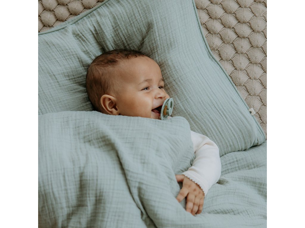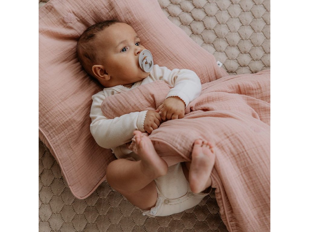 BIBS je obľúbená dánska značka s tradíciou výroby ikonických cumlíkov od roku 1978. Okrem cumlíkov BIBS ponúka aj pestrý prémiový sortiment pre najmenšie deti v minimalistickom škandinávskom dizajne a širokej farebnej palete. BIBS mušelínové obliečky sú vyrobené zo 100% organickej bavlny. Nariasený mušelín je predpraný, hebký a priedušný. Zároveň je vďaka svojej gramáži odolný a nestráca tvar ani pri častom používaní a praní. Kvalitu použitého materiálu spoznáte na prvý dotyk. Mušelín je totiž najhebkejšia bavlnená látka, každým praním sa ešte viac zjemňuje a je mimoriadne príjemná na kontakt s jemnou detskou pokožkou. Samozrejmosťou detských posteľných obliečok BIBS je typický škandinávsky minimalistický dizajn, v ktorom je dokonale prepracovaný každý detail. Neodmysliteľnou súčasťou tejto dánskej značky je roztomilé srdiečko, ktoré nemôže chýbať ani na obliečkach. Pekným dizajnovým detailom je aj nápadné lemovanie, ktoré napomáha odolnosti materiálu pri používaní a praní. Navliekanie cez praktický kvalitný zips. Set obliečok je zabalený v mušelínovej taštičke vo farbe obliečok. Rozmery : Obliečka na vankúš : 40 x 45cmObliečka na prikrývku : 70 x 100cmMušelínová taška : 20 x 22cm Zloženie : 100% organická BIO bavlna Údržba : Pranie na 30°C v práčke, jemný program. Nežehliť, stratil by sa nariasený efekt mušelínu. Nečistiť chemicky, nesušiť v sušičke. Čím viac sa mušelín perie, tým je mäkší a viac absorbuje vlhkosť. Používanie aviváže môže znižovať absorpčnú schopnosť.