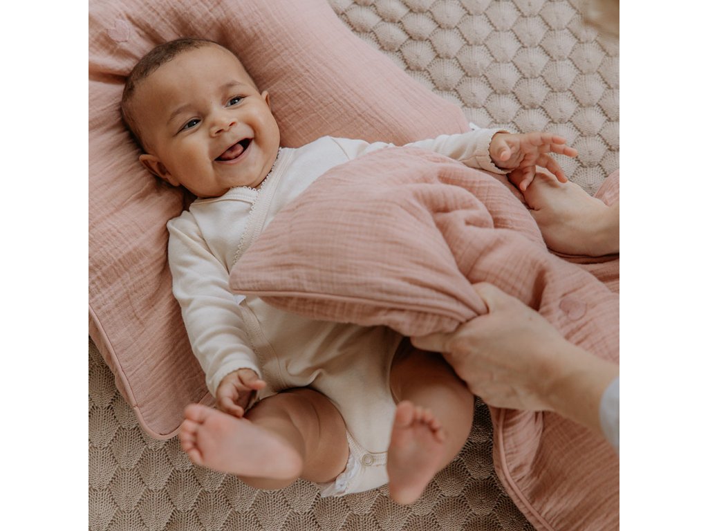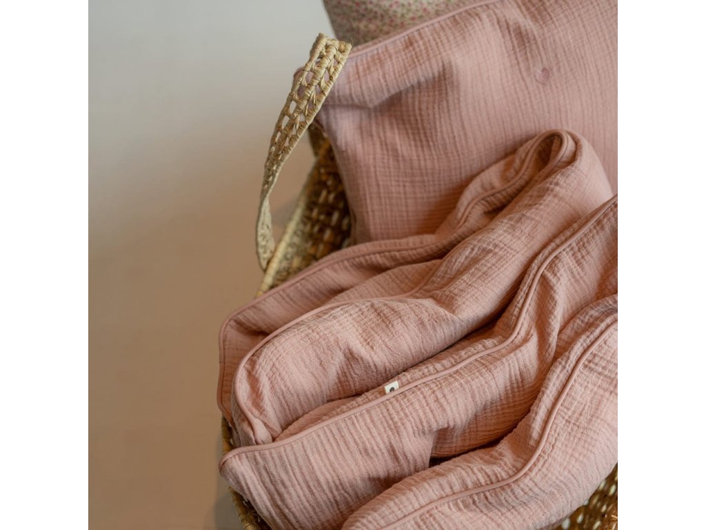 BIBS je obľúbená dánska značka s tradíciou výroby ikonických cumlíkov od roku 1978. Okrem cumlíkov BIBS ponúka aj pestrý prémiový sortiment pre najmenšie deti v minimalistickom škandinávskom dizajne a širokej farebnej palete. BIBS mušelínové obliečky sú vyrobené zo 100% organickej bavlny. Nariasený mušelín je predpraný, hebký a priedušný. Zároveň je vďaka svojej gramáži odolný a nestráca tvar ani pri častom používaní a praní. Kvalitu použitého materiálu spoznáte na prvý dotyk. Mušelín je totiž najhebkejšia bavlnená látka, každým praním sa ešte viac zjemňuje a je mimoriadne príjemná na kontakt s jemnou detskou pokožkou. Samozrejmosťou detských posteľných obliečok BIBS je typický škandinávsky minimalistický dizajn, v ktorom je dokonale prepracovaný každý detail. Neodmysliteľnou súčasťou tejto dánskej značky je roztomilé srdiečko, ktoré nemôže chýbať ani na obliečkach. Pekným dizajnovým detailom je aj nápadné lemovanie, ktoré napomáha odolnosti materiálu pri používaní a praní. Navliekanie cez praktický kvalitný zips. Set obliečok je zabalený v mušelínovej taštičke vo farbe obliečok. Rozmery : Obliečka na vankúš : 40 x 45cmObliečka na prikrývku : 70 x 100cmMušelínová taška : 20 x 22cm Zloženie : 100% organická BIO bavlna Údržba : Pranie na 30°C v práčke, jemný program. Nežehliť, stratil by sa nariasený efekt mušelínu. Nečistiť chemicky, nesušiť v sušičke. Čím viac sa mušelín perie, tým je mäkší a viac absorbuje vlhkosť. Používanie aviváže môže znižovať absorpčnú schopnosť.