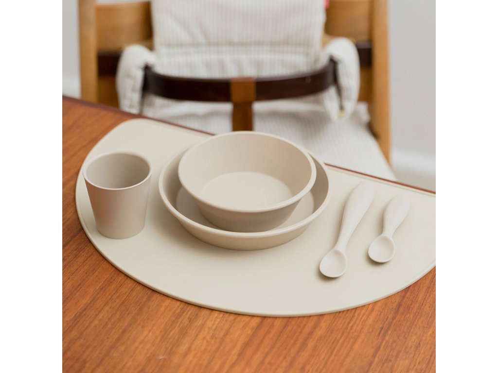BIBS je obľúbená dánska značka s tradíciou výroby ikonických cumlíkov už od roku 1978. Okrem cumlíkov BIBS ponúka aj pestrý prémiový sortiment pre najmenšie deti v minimalistickom škandinávskom dizajne a širokej farebnej palete. Všetky BIBS produkty sú garanciou najvyššej kvality detského sortimentu. Prestieranie BIBS poslúži ako skvelý pomocník na zachytenie neporiadku a upratovanie po každom jedle sa stane hračkou. Okrem iného zabráni pohybu taniera alebo misky pri používaní príboru. Dieťa sa tak ľahšie naučí používať lyžičku a vidličku a jeho motorika sa každým jedlom zlepšuje. A vďaka všestrannosti silikónového prestierania ho môžete použiť aj ako podložku, keď má vaše dieťa tvorivú chvíľku. Dizajn prestierania Classic je inšpirovaný ikonickým cumlíkom BIBS Colour, jeho jednoduchosťou, minimalizmom a zároveň maximálnou funkčnosťou. Okrúhly vyvýšený okraj zadržiava tekutiny vo vnútri prestierania. Vyvýšené okraje na zadržanie rozliatej tekutiny. 100% potravinársky silikón bez BPA, PVC a ftalátov. Protišmykový povrch, neabsorbuje vodu. Prestieranie sa dá zrolovať a zobrať kdekoľvek so sebou. Jednoduché čistenie. Údržba: Umyte teplou vodou, prípadne saponátom a dôkladne opláchnite. Možno umývať aj v umývačke riadu. Rozmery: 42 x 27 cm