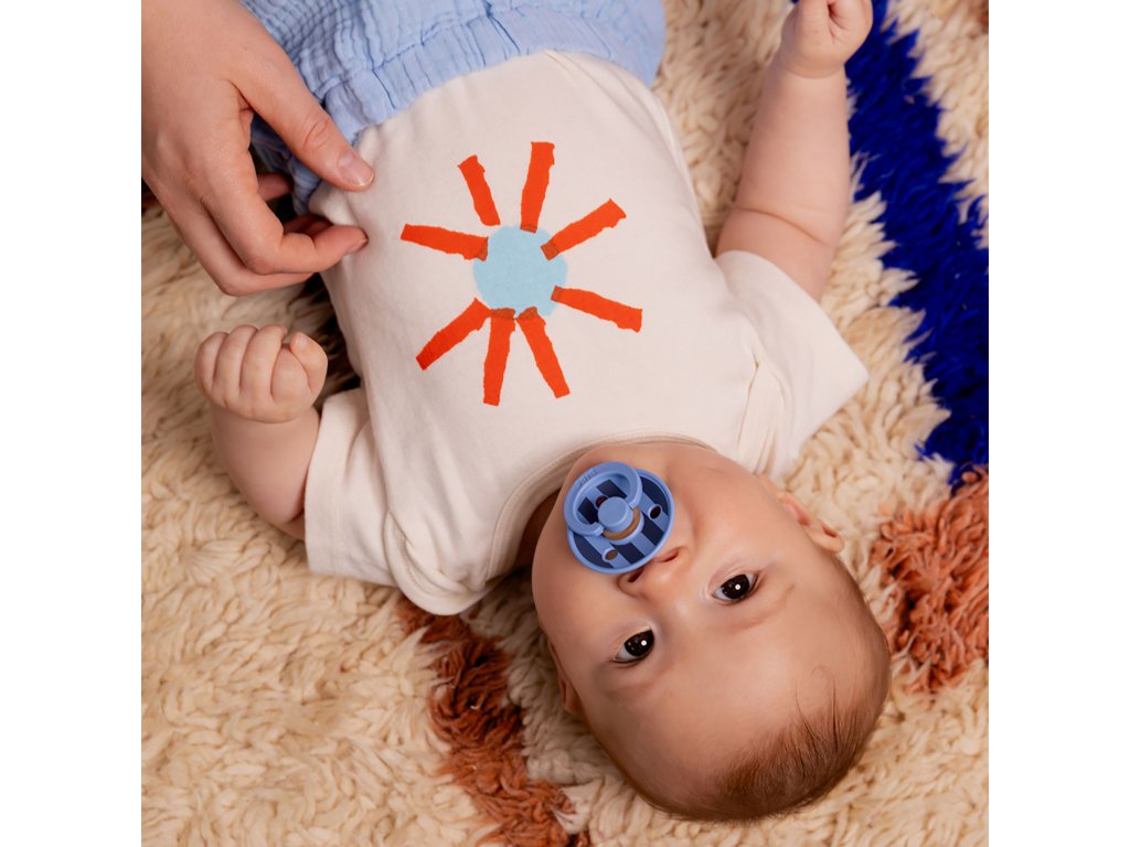 BIBS STUDIO Colour cumlíky z prírodného kaučuku 2ks Renomovaná francúzska dizajnérka Glitter Power Club vytvorila pre BIBS exkluzívnu sadu potlačí a BIBS tak opäť prináša nový a svieži vietor do sveta detských produktov. Kolekcia BIBS Studio je inšpirovaná aktuálnymi trendami v dizajne, experimentuje s potlačou inovatívnym spôsobom a BIBS tak naďalej určuje trendy v rodičovstve. BIBS dobývajú celý svet. Jednoduché a štýlové. Sacia časť je vyrobená zo 100% prírodného kaučuku, ktorý je mimoriadne pružný a mäkký zároveň, odolný voči vytvoreniu trhlín a odštiepeniu malých kúskov. Cumlík je navrhnutý tak, aby nedráždil citlivú pokožku bábätka. Okrúhly krúžok s vetracími otvormi má klenutý tvar, takmer vôbec sa nedotýka pokožky okolo úst, tá preto zostáva kľudná, bez otlačkov a podráždení. Vďaka mäkučkému kaučuku a zabudovanému vzduchovému ventilu dieťa cumlík ľahko stláča a formuje v ústach, čím je zachovaný prirodzený vývin podnebia, ďasien a zúbkov detí. Prečo deti aj rodičia obľubujú cumlíky BIBS Colour? Extra ľahučký. Vďaka špeciálnemu klenutému tvaru krúžku je minimalizovaný dotyk cumlíka s pokožkou a nevznikajú otlačky a podráždenia. Guľatý / čerešničkový tvar sacej časti si často obľúbia aj deti, ktoré odmietajú iné tvary cumlíka. Dieťa saje len 100% prírodný bezpečný materiál – kaučuk vyrobený z miazgy stromu Hevea. Výnimočná chuť prírodného kaučuku, deti ho prirodzene uprednostňujú pred syntetickými materiálmi. Štýlový dizajn v mnohých farebných prevedeniach. Vyrobené v EU. Zloženie : Sacia časť: 100% prírodný kaučuk Ostatné časti: polypropylén (PP) potravinárskej kvality. Bez BPA, PVC, ftalátov a iných škodlivých látok. Vyrobené v Dánsku. V súlade s európskym štandardom EN 1400+A2. Veľkosti: BIBS Studio Colour cumlíky sú k dispozícii v 2 veľkostiach: Veľkosť 1: 0 - 6 mesiacov. Veľkosť 2: 6 - 18 mesiacov. Vekové odporúčanie veľkostí je len orientačné, každé dieťa môže mať iné potreby a preferencie.
