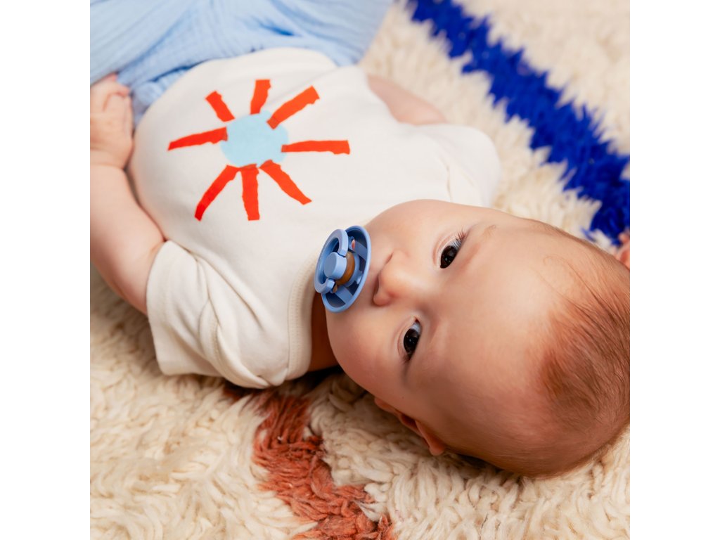 BIBS STUDIO Colour cumlíky z prírodného kaučuku 2ks Renomovaná francúzska dizajnérka Glitter Power Club vytvorila pre BIBS exkluzívnu sadu potlačí a BIBS tak opäť prináša nový a svieži vietor do sveta detských produktov. Kolekcia BIBS Studio je inšpirovaná aktuálnymi trendami v dizajne, experimentuje s potlačou inovatívnym spôsobom a BIBS tak naďalej určuje trendy v rodičovstve. BIBS dobývajú celý svet. Jednoduché a štýlové. Sacia časť je vyrobená zo 100% prírodného kaučuku, ktorý je mimoriadne pružný a mäkký zároveň, odolný voči vytvoreniu trhlín a odštiepeniu malých kúskov. Cumlík je navrhnutý tak, aby nedráždil citlivú pokožku bábätka. Okrúhly krúžok s vetracími otvormi má klenutý tvar, takmer vôbec sa nedotýka pokožky okolo úst, tá preto zostáva kľudná, bez otlačkov a podráždení. Vďaka mäkučkému kaučuku a zabudovanému vzduchovému ventilu dieťa cumlík ľahko stláča a formuje v ústach, čím je zachovaný prirodzený vývin podnebia, ďasien a zúbkov detí. Prečo deti aj rodičia obľubujú cumlíky BIBS Colour? Extra ľahučký. Vďaka špeciálnemu klenutému tvaru krúžku je minimalizovaný dotyk cumlíka s pokožkou a nevznikajú otlačky a podráždenia. Guľatý / čerešničkový tvar sacej časti si často obľúbia aj deti, ktoré odmietajú iné tvary cumlíka. Dieťa saje len 100% prírodný bezpečný materiál – kaučuk vyrobený z miazgy stromu Hevea. Výnimočná chuť prírodného kaučuku, deti ho prirodzene uprednostňujú pred syntetickými materiálmi. Štýlový dizajn v mnohých farebných prevedeniach. Vyrobené v EU. Zloženie : Sacia časť: 100% prírodný kaučuk Ostatné časti: polypropylén (PP) potravinárskej kvality. Bez BPA, PVC, ftalátov a iných škodlivých látok. Vyrobené v Dánsku. V súlade s európskym štandardom EN 1400+A2. Veľkosti: BIBS Studio Colour cumlíky sú k dispozícii v 2 veľkostiach: Veľkosť 1: 0 - 6 mesiacov. Veľkosť 2: 6 - 18 mesiacov. Vekové odporúčanie veľkostí je len orientačné, každé dieťa môže mať iné potreby a preferencie.