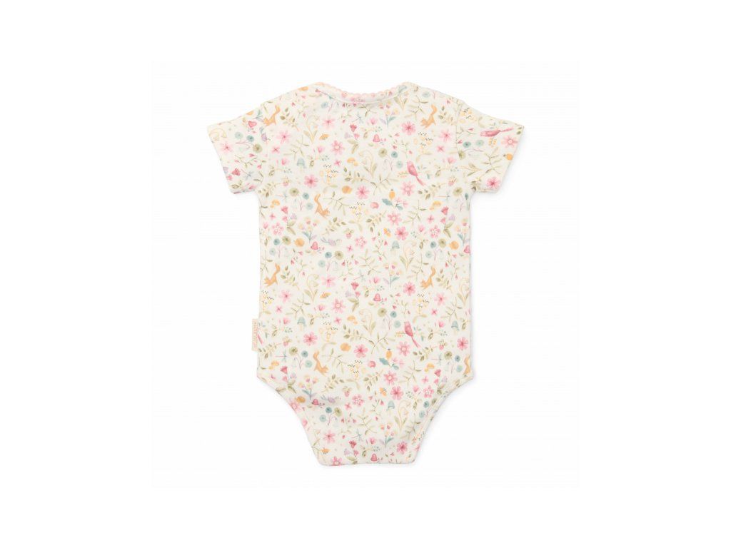 Body z jemnej organickej bavlny s krásnou kvetinovou potlačou má zapínanie na patentky v rozkroku pre ľahké obliekanie dieťaťa.