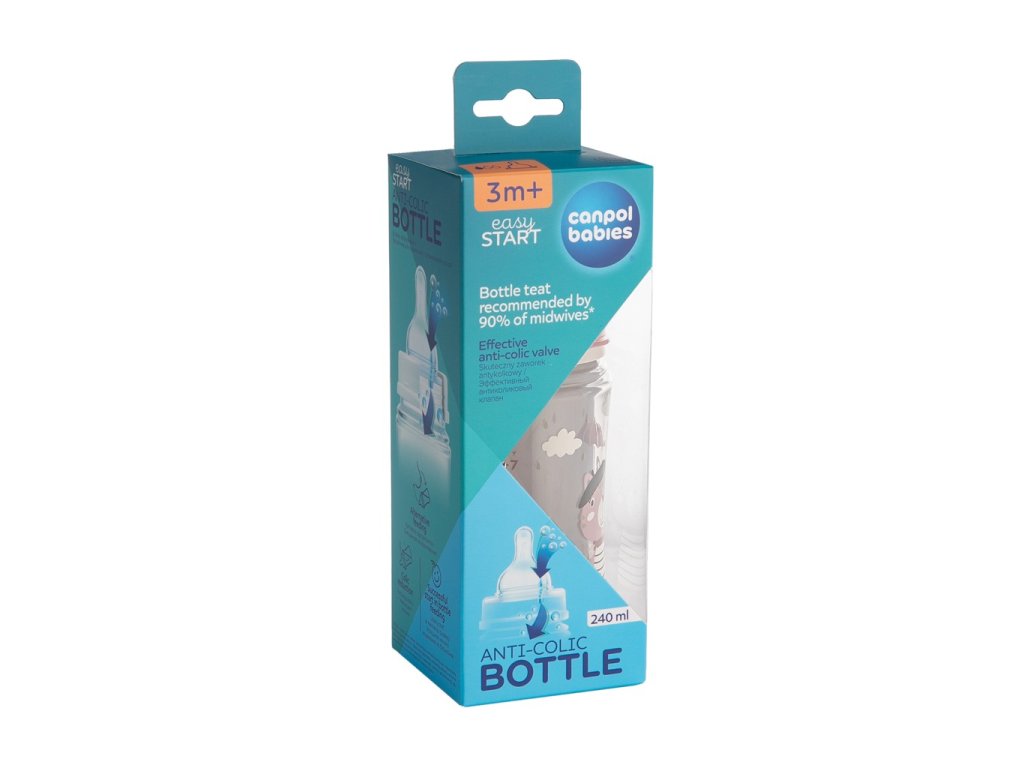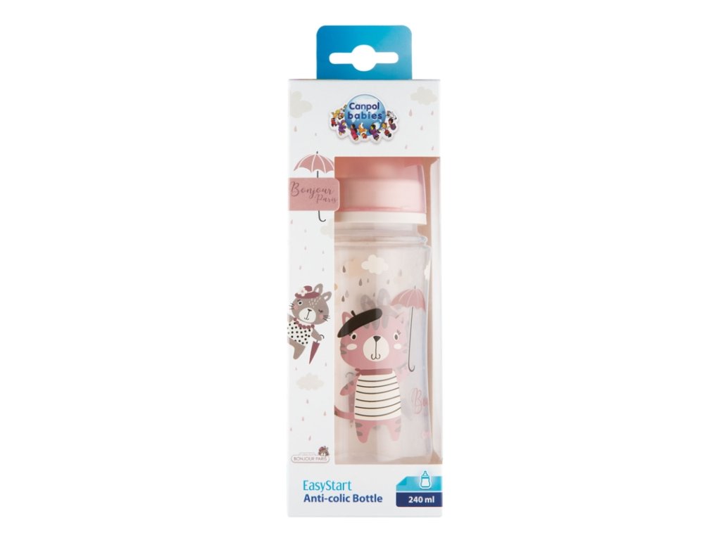 Tvarovaná antikoliková fľaša EasyStart z exkluzívnej kolekcie BONJOUR, PARIS! s objemom 240 ml, ktorá sa veľmi dobre plní, umýva a drží pri kŕmení. Vyrobená pre spokojné bruško vášho dieťatka.