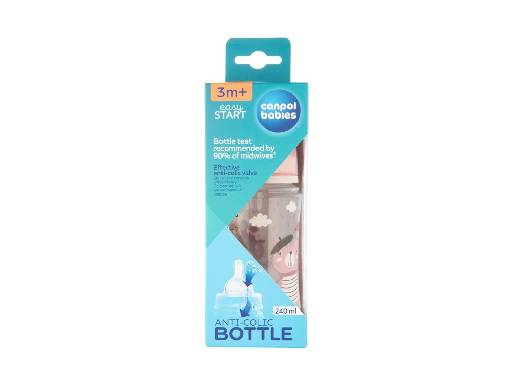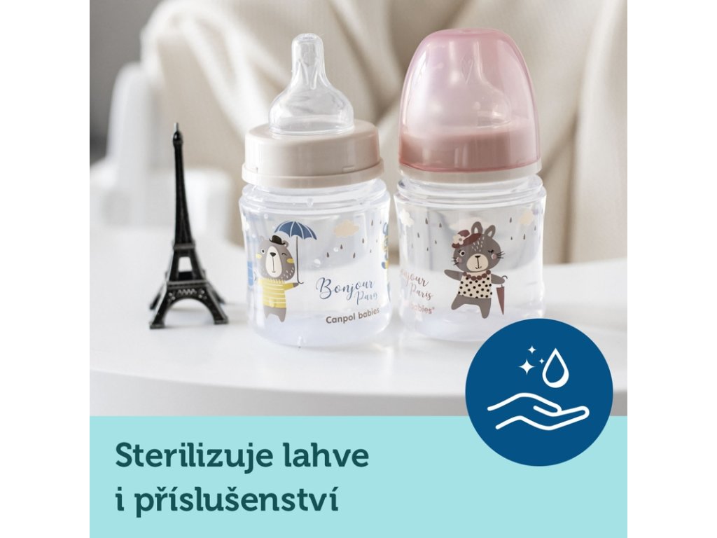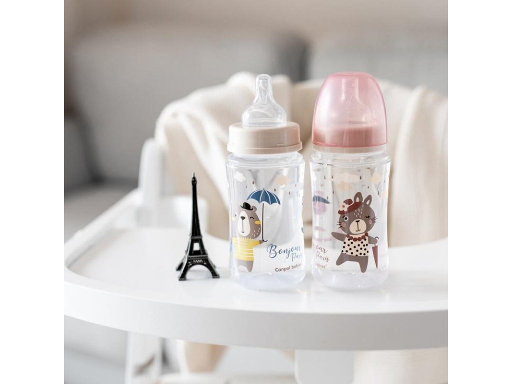CANPOL BABIES Fľaša so širokým hrdlom Bonjour Paris 240 ml ružová