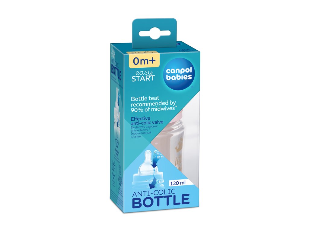 Tvarovaná antikoliková fľaša EasyStart z exkluzívnej kolekcie ROYAL BABY s objemom 120 ml, ktorá sa veľmi dobre plní, umýva a drží pri kŕmení. Vyrobená pre spokojné bruško vášho dieťatka.