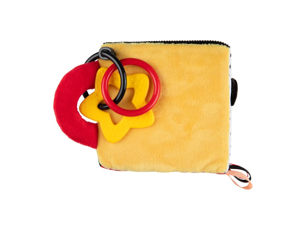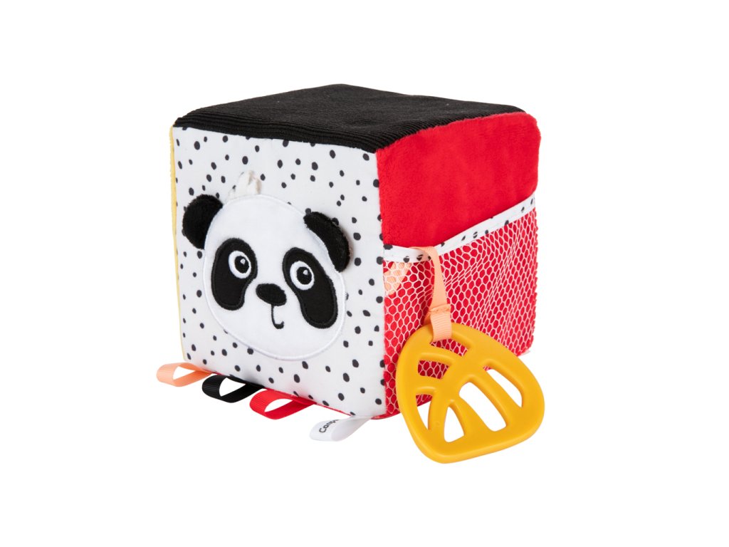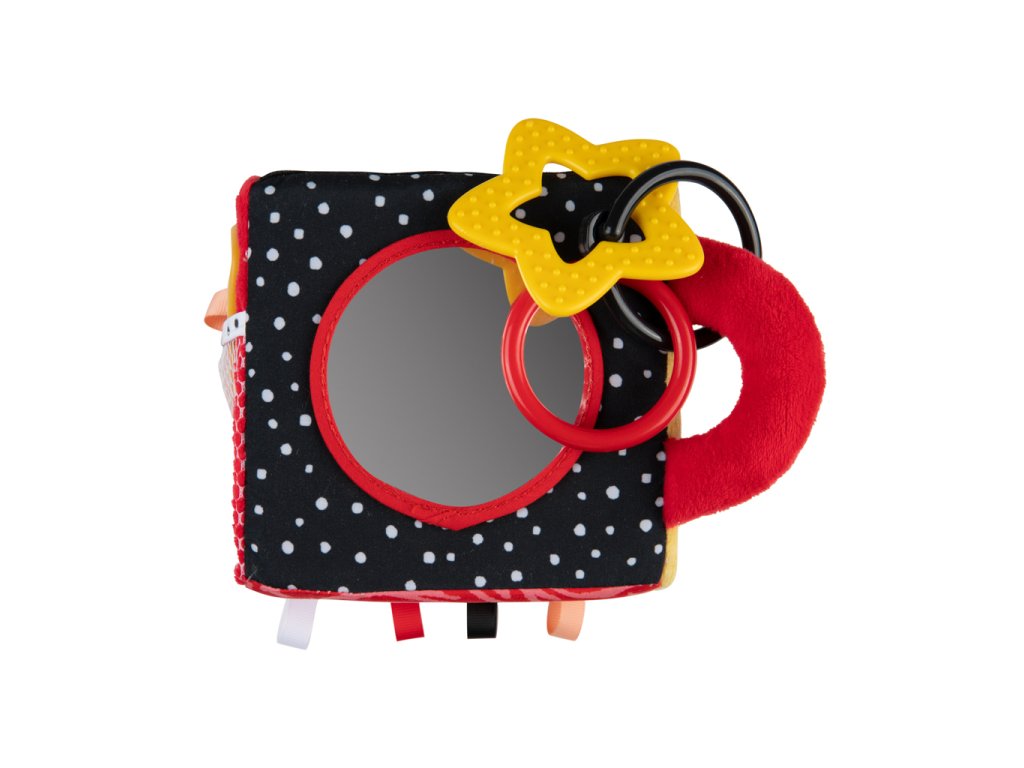 Mäkká kontrastná kocka z kolekcie BabiesBoo má mnoho senzorických prvkov, ktoré povzbudzujú k hre a podporujú rozvoj zmyslov od prvých okamihov života: zrak, sluch a hmat. Šuštiace prvky, hryzačka, zrkadlo alebo jemne zvoniaca hrkálka sú pre dieťa zaujímavé pri prvom objavovaní sveta. Mäkká senzorická kocka v kontrastných farbách, ktoré novorodenci vidia ako prví, podporuje správny vývoj zraku dieťaťa. Univerzálny krúžok umožňuje pripevniť hračku na postieľku, kočík, hojdacie kreslo alebo autosedačku. Senzorická kocka tak poskytne vášmu dieťatku zábavu doma, na prechádzke alebo na cestách. Hračka je vyrobená z mäkkých a na dotyk príjemných materiálov tak, aby rozmanitosť textúr stimulovala rozvoj zmyslov vášho dieťatka. Kocka má vrecko, do ktorého si dieťatko môže schovať hryzátko pripevnené na stuhe a tým aj precvičiť manuálnu zručnosť. Flexibilné hryzátko poskytne vášmu dieťatku úľavu v období prerezávania zúbkov, masíruje ďasná a upokojujú svrbenie spôsobené prerezávaním prvých zúbkov. Hračka pre prvé týždne života vášho bábätka odporúčaná fyzioterapeutom. Kontrastná kocka pre bábätká je skvelý spôsob, ako sa hrať poležiačky na brušku, podporuje rozvoj sluchovej a pohybovej koordinácie a tiež precvičuje zrakové, hmatové a motorické vnímanie u dieťatka. Ideálne pre deti od prvých okamihov života.