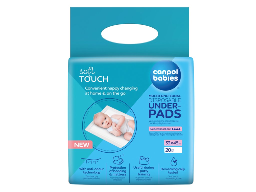 Hygienické podložky Canpol babies s mäkkou a jemnou vrchnou vrstvou sú šetrné k detskej pokožke. Podložky sú vyrobené technológiou, ktorá neutralizuje nepríjemné pachy a pomáha udržovať pocit sviežosti. Dermatologicky testované.