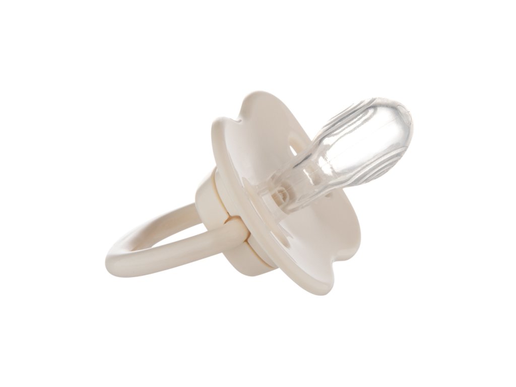 Špeciálne profilovaný štítok umožňuje dieťaťu voľne dýchať nosom a minimalizuje odtlačky cumlíka na jemnú tvár dieťaťa. Ďalšie vetracie otvory umožňujú pokožke dýchať a zabraňujú podráždeniu. Praktický úchyt cumlíka uľahčuje jeho podávanie dieťaťu a umožňuje pripevniť retiazku alebo stuhu na cumlík, ktorý ochráni cumlík pred stratou alebo pádom na zem a zašpinením.