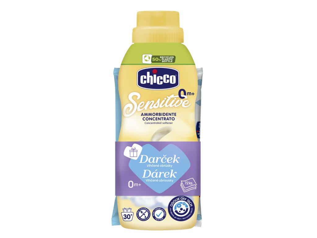 CHICCO Aviváž koncentrovaná Jemný dotyk 750 ml + vlhčené obrúsky 72 ks zadarmo