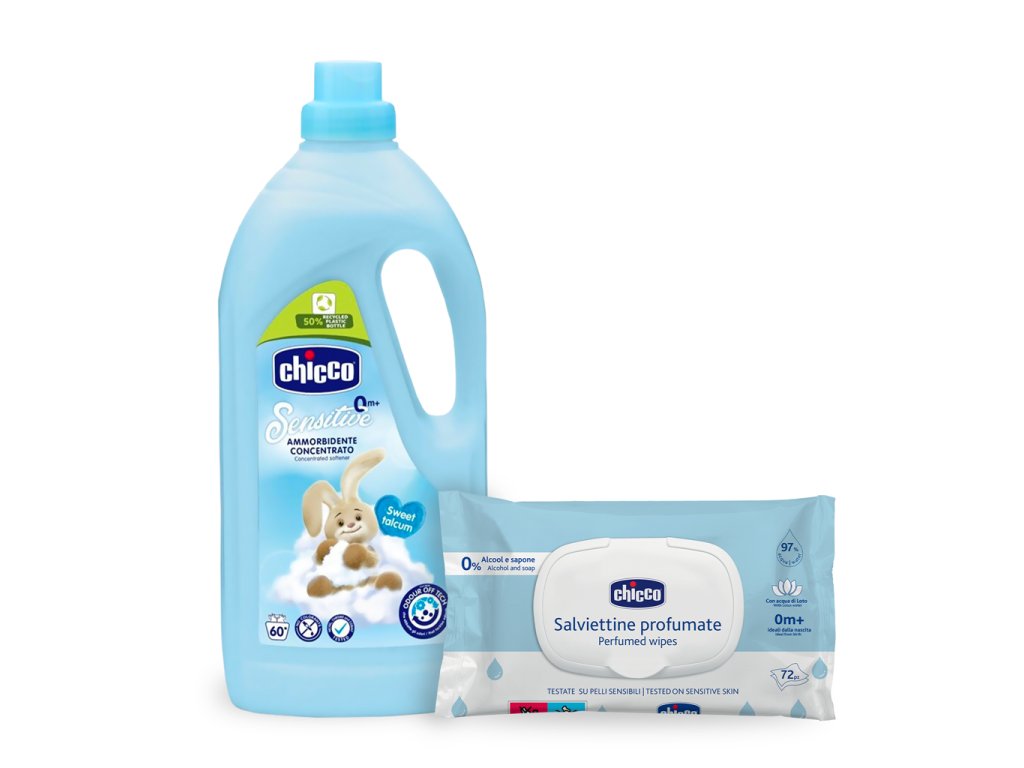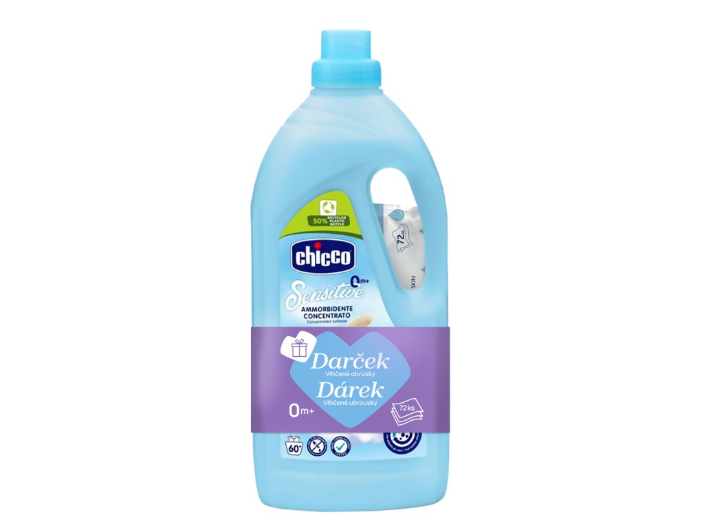 CHICCO Aviváž koncentrovaná Sladký Púder 1,5 l, 60 pranie + vlhčené obrúsky 72 ks zadarmo