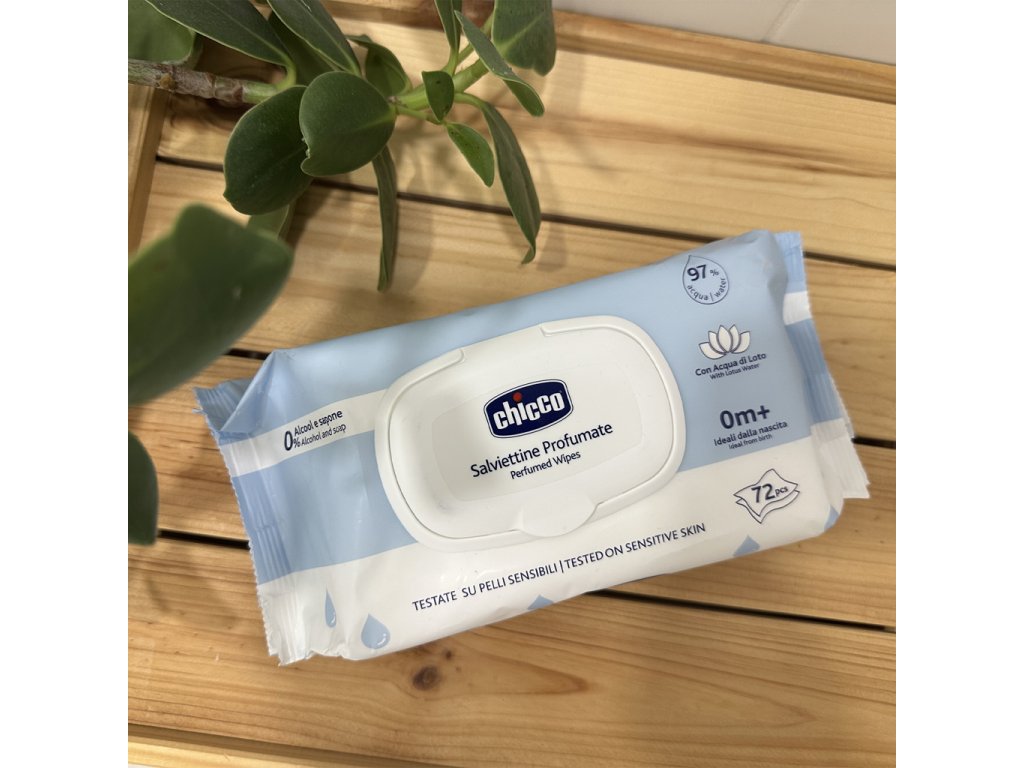 Vlhčené parfumované obrúsky Chicco čistia, osviežujú a hydratujú citlivú detskú pokožku. Zloženie s 97 % vody a výťažkom z lotosového kvetu je ideálne pri prebaľovaní aj na čistenie detských rúk a tváre.