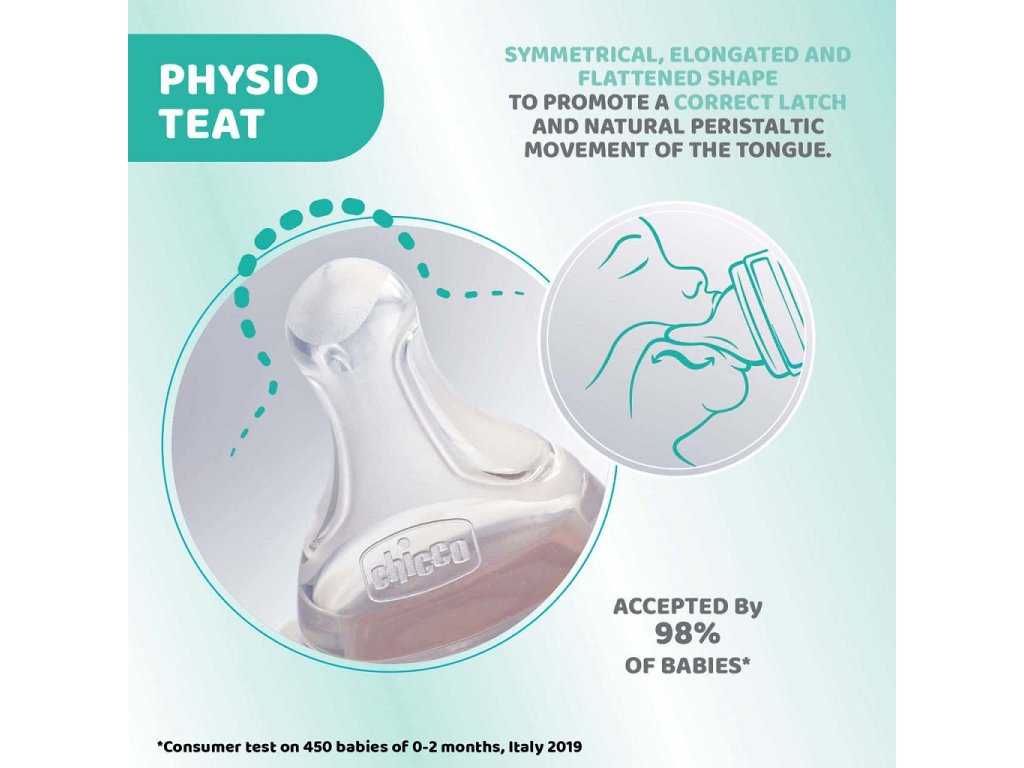 Chicco Perfect 5 je bio-funkčná dojčenská fľaša, ktorá sa prispôsobuje potrebám vášho dieťaťa vďaka intuitívnemu systému tečenia: inovatívny systém bol navrhnutý tak, aby podporoval a vedel sa prispôsobiť fyziologickému saniu každého dieťaťa, aby sa počas a po kŕmení cítilo spokojné a uvoľnené.