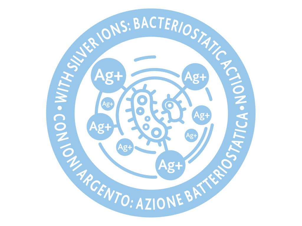 Hubka je obohatená o ióny striebra, ktoré majú bakteriostatický účinok, pomáhajú predchádzať rastu baktérií a nepríjemným zápachom a zachovávajú hygienu výrobku.