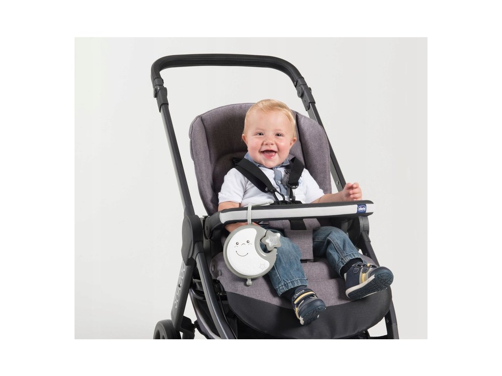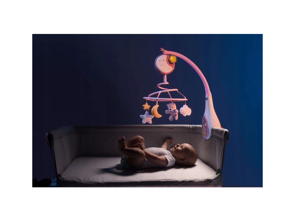 - ODNÍMATEĽNÝ ELEKTRONICKÝ BOX: Odnímateľná a prenosná hudobná skrinka so svetielkom v tvare mesiačika slúži ako hudobná hračka – dá sa zavesiť na bok postieľky, ale napríklad na kočík
