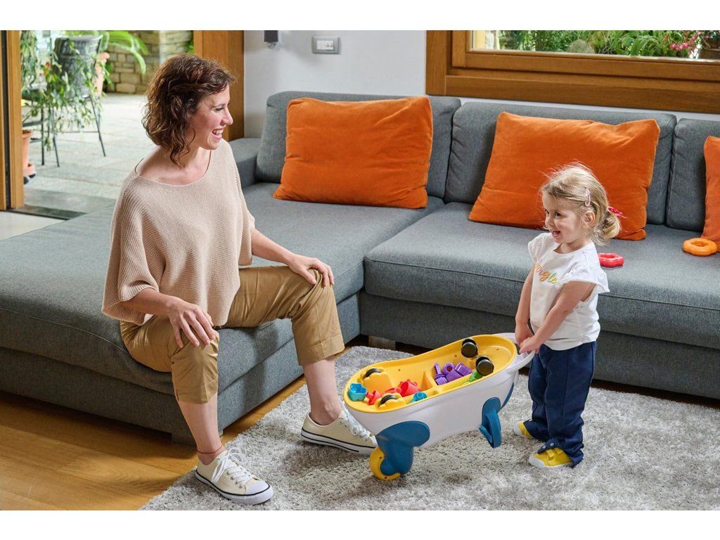 3. Od 18 mesiacov možno hračku používať ako fúrik. Otočenú hračku hore nohami dieťa tlačí za ako fúrik, aby mohlo prenášať akýkoľvek predmet. Táto činnosť pomôže deťom rozvíjať kreativitu a voľný pohyb v priestore.