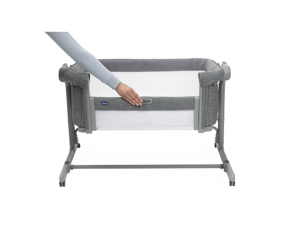 Špeciálnou funkciou je režim hojdania/kolísky, ktorý možno aktivovať jednoduchým pohybom ruky a pomocou ktorého môžete jemne hojdať svoje dieťa. Postieľka je pre rodičov veľmi praktická vďaka posuvnému bočnému panelu, ktorý možno otvoriť jednou rukou a 4 otočným kolieskam, ktoré uľahčujú jej premiestňovanie po dome.