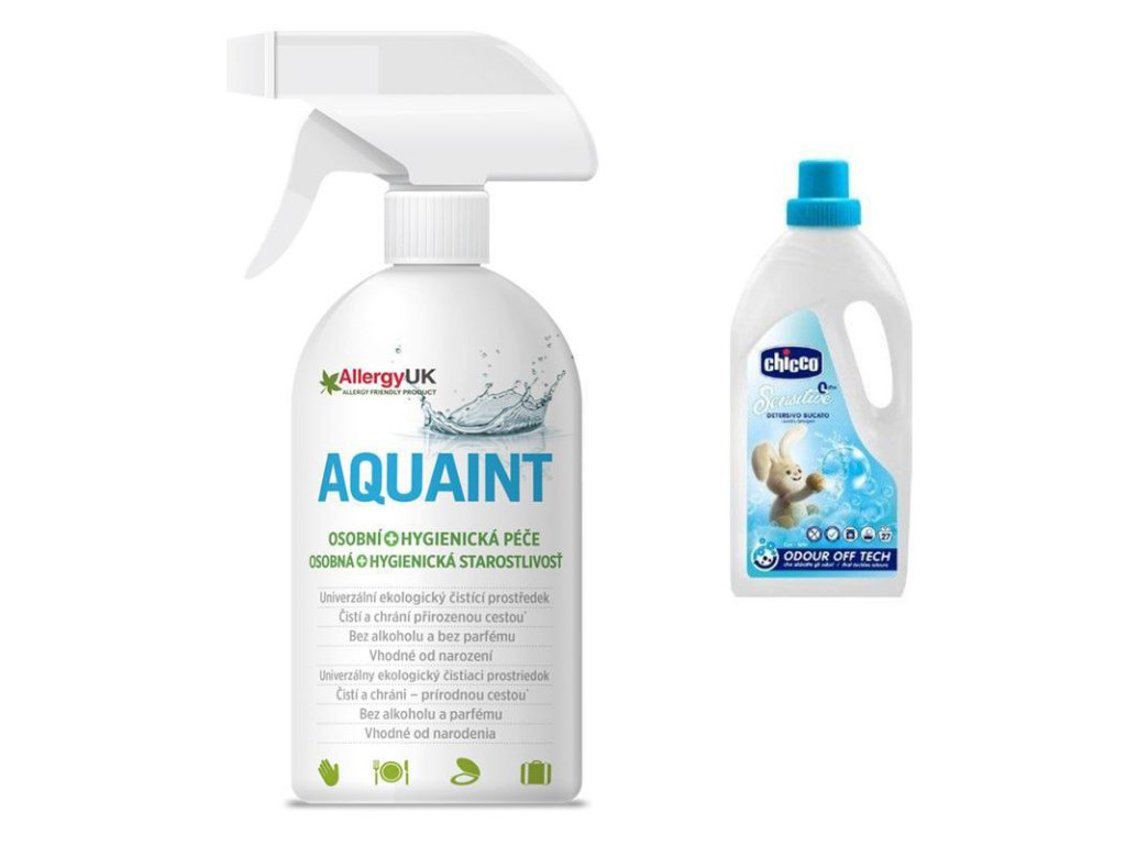 AQUAINT 100% ekologická čistiaca voda 500ml + CHICCO Prostriedok prací detský Chicco Sensitive, 1,5l