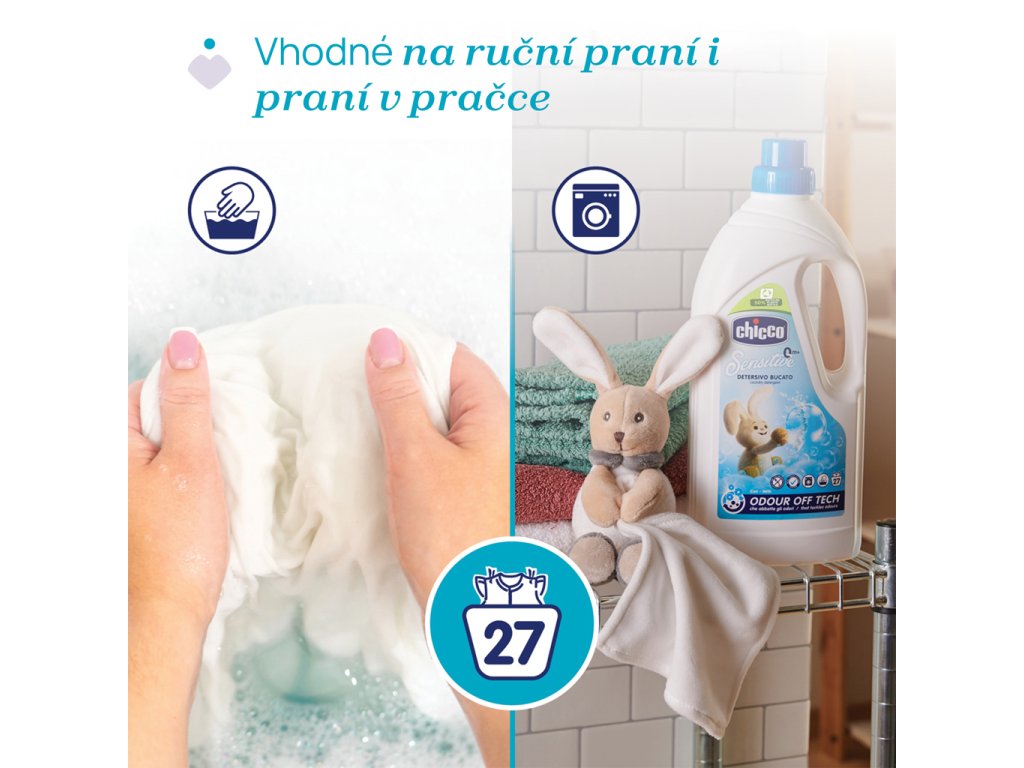 Prací prostriedok Chicco je špeciálne vyvinutý pre čistenie detského oblečenia.