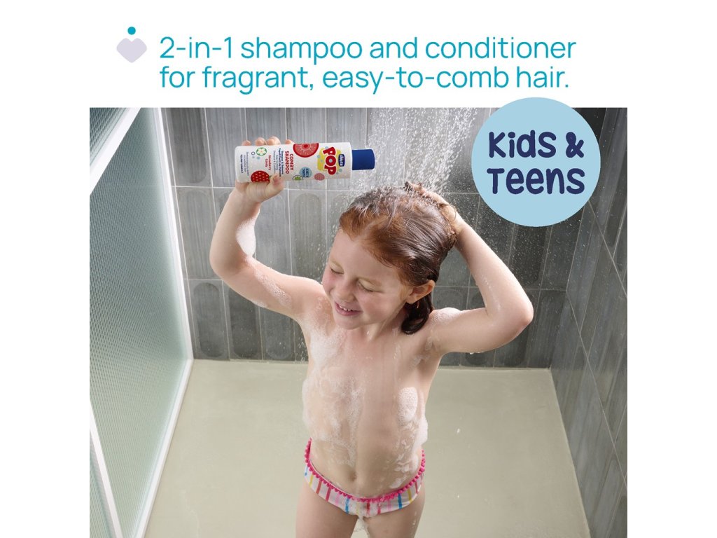 - 2v1 šampón a kondicionér – čistí a zjemňuje vlasy v jednom kroku