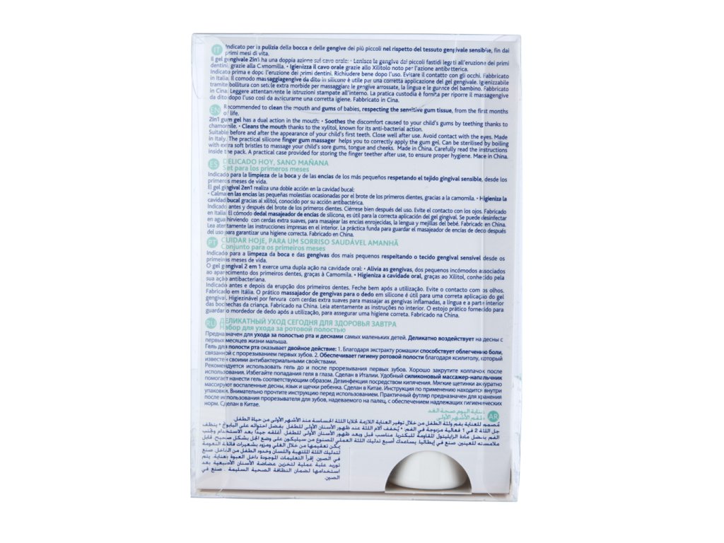 Keď dieťatko potrebuje utíšiť bolesť ďasien v dôsledku rastu prvých zúbkov, set upokojujúceho gélu s náprstkom sú ideálni pomocníci pri jemnej masáži ďasien a starostlivosti o prvé zúbky. Pediatri rovnako odporúčajú vyčistiť ďasná dieťaťa po každom kŕmení, aby sa odstránili všetky baktérie, ktoré môžu byť prítomné. Súčasťou setu je zubný upokojujúci gél, zubná kefka na prst a hygienické puzdro na kefku.
