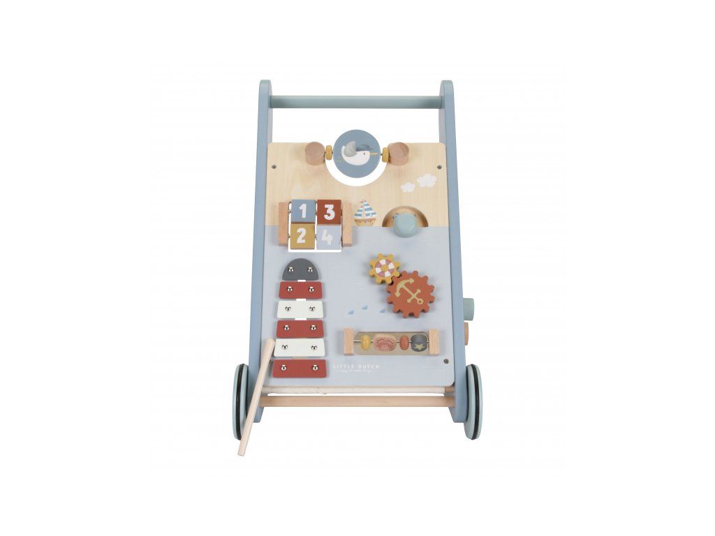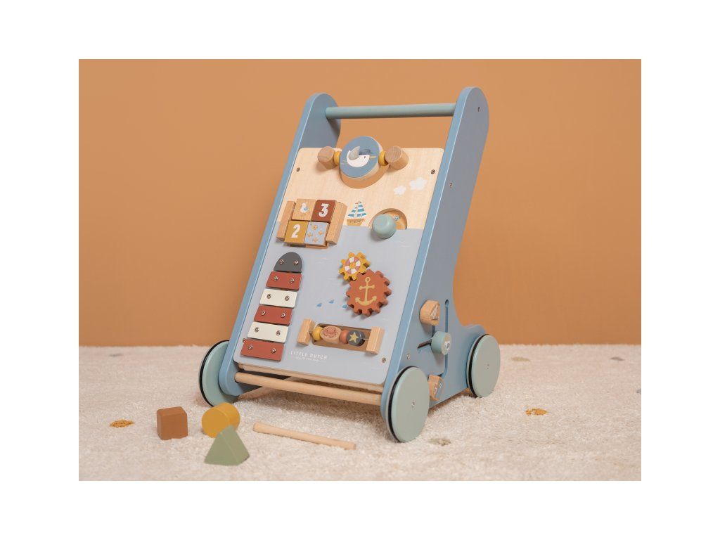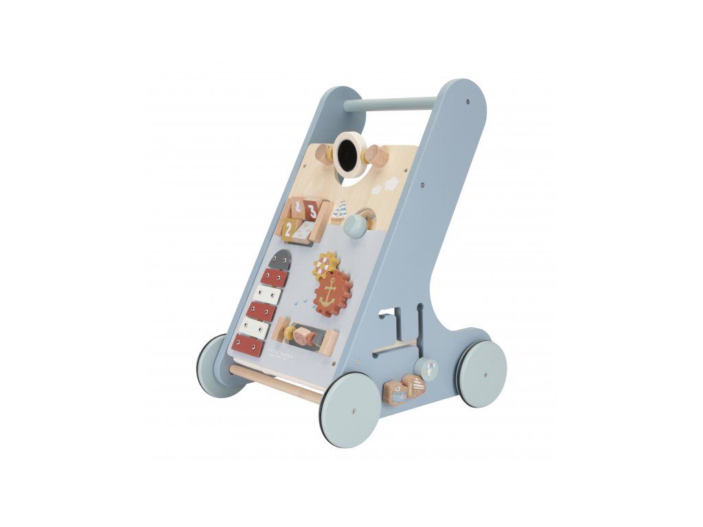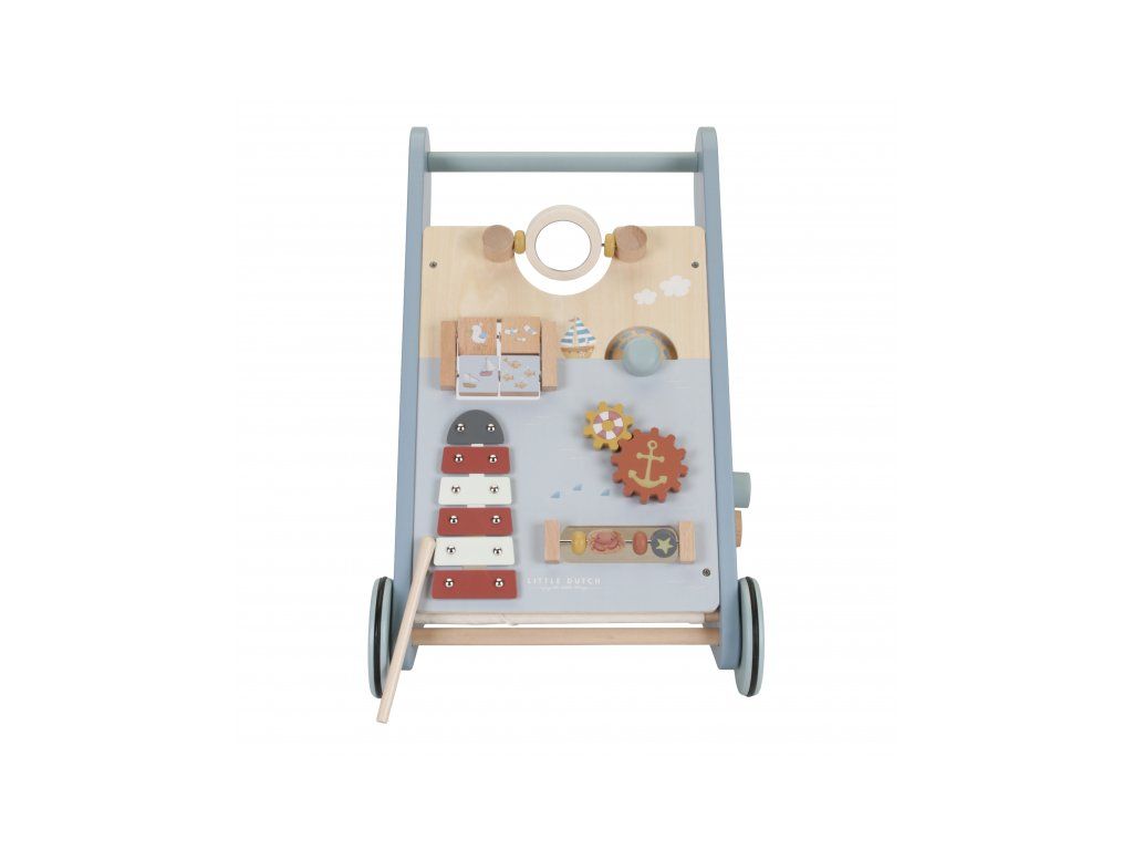 Drevené multifunkčné chodítko ponúka množstvo zaujímavých aktivít na podporu rozvoja motoriky vášho dieťaťa. Pozrite sa, ako sa svetlo odráža, keď otáčate zrkadlom. Zahrajte sa na xylofón! Alebo skúste otáčať ozubenými kolesami, aby ste roztočili kotvu!