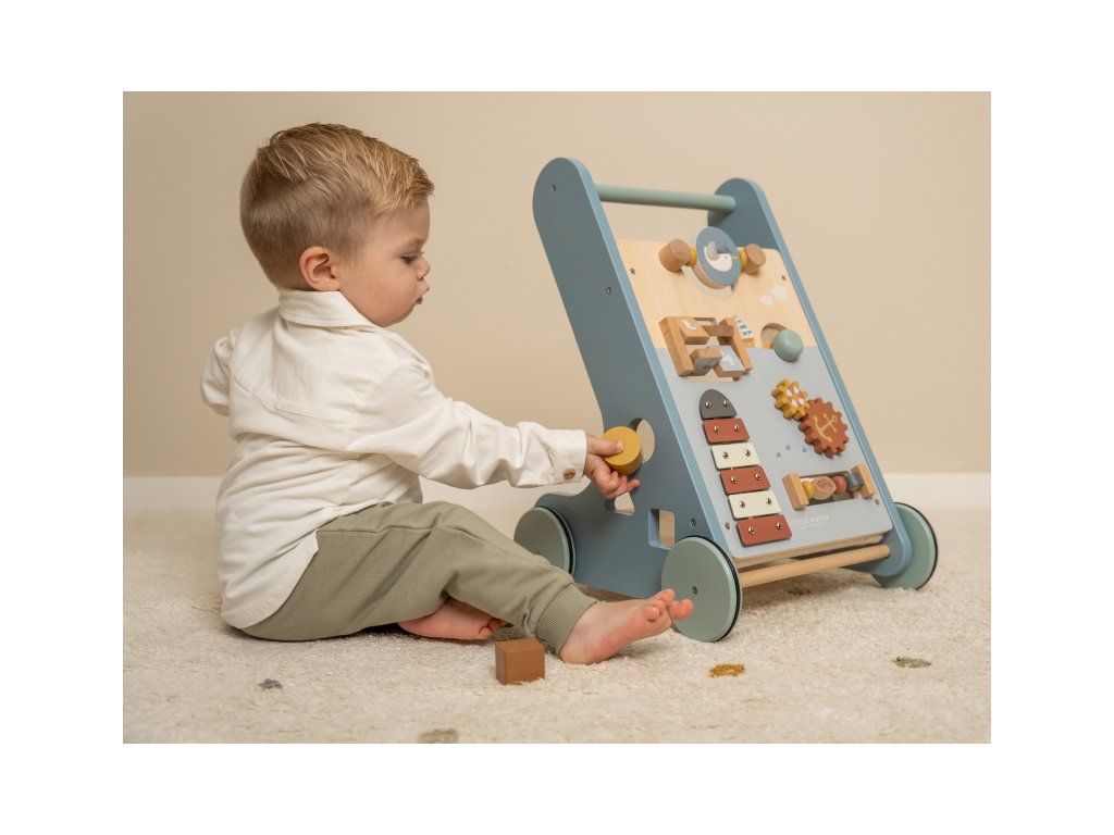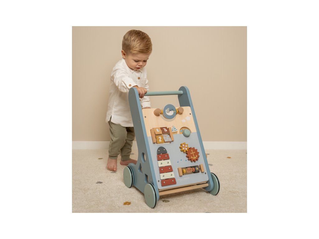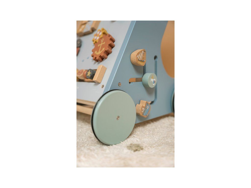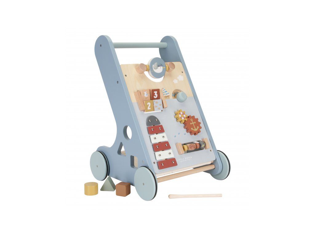 Drevené multifunkčné chodítko ponúka množstvo zaujímavých aktivít na podporu rozvoja motoriky vášho dieťaťa. Pozrite sa, ako sa svetlo odráža, keď otáčate zrkadlom. Zahrajte sa na xylofón! Alebo skúste otáčať ozubenými kolesami, aby ste roztočili kotvu!