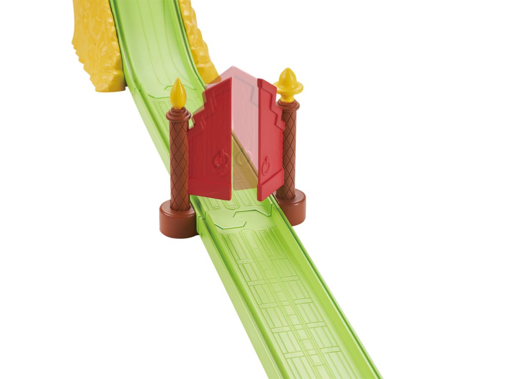 Funkcia výťahu na stanici umožnuje deťom pohybovať lokomotívou hore a dole (manuálne).