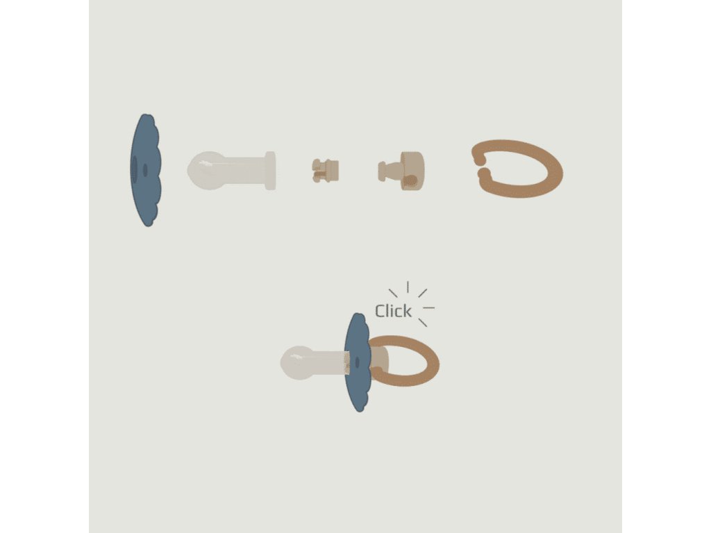 Nový Click-lock™ systém odlišuje cumlík FRIGG od akéhokoľvek iného cumlíku na trhu. Vďaka novému 4-krokovému procesu spájania jednotlivých častí cumlíka je možné cumlík zostaviť jednoduchým kliknutím, bez použitia akejkoľvek sily. Vďaka tomu je cumlík ešte odolnejší ako predtým.
