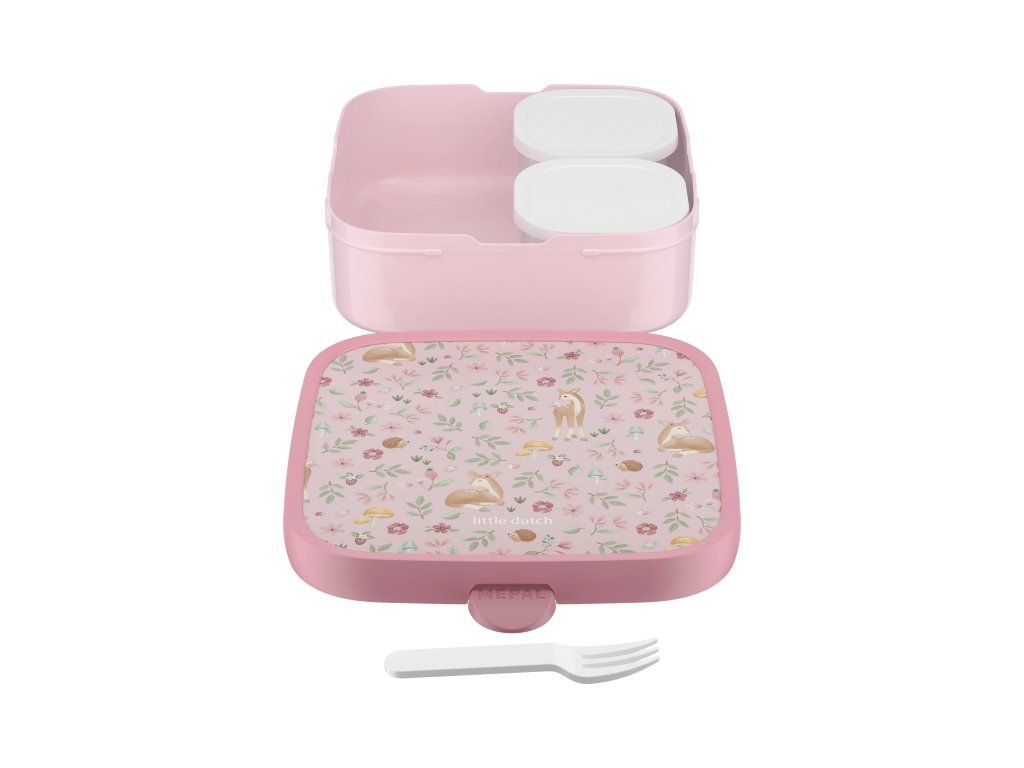 Veľký desiatový box má vo vnútri dve vyberateľné krabičky s viečkom na oddelenie jednotlivých častí uloženej desiaty. Súčasťou boxu je aj malá vidlička, ktorá je ideálna na napichovanie kúskov ovocia či zeleniny. Zacvakávací uzáver je zárukou bezpečného uzavretia obsahu boxu.