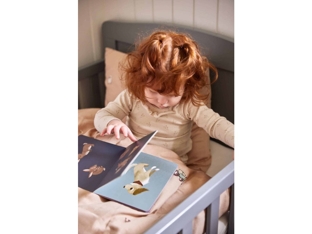 Kniha má 18 strán s ručne kreslenými ilustráciami. Hrubé kartónové strany sú jemne potiahnuté a po uchopení malými lepkavými prstami sa dajú ľahko zotrieť.