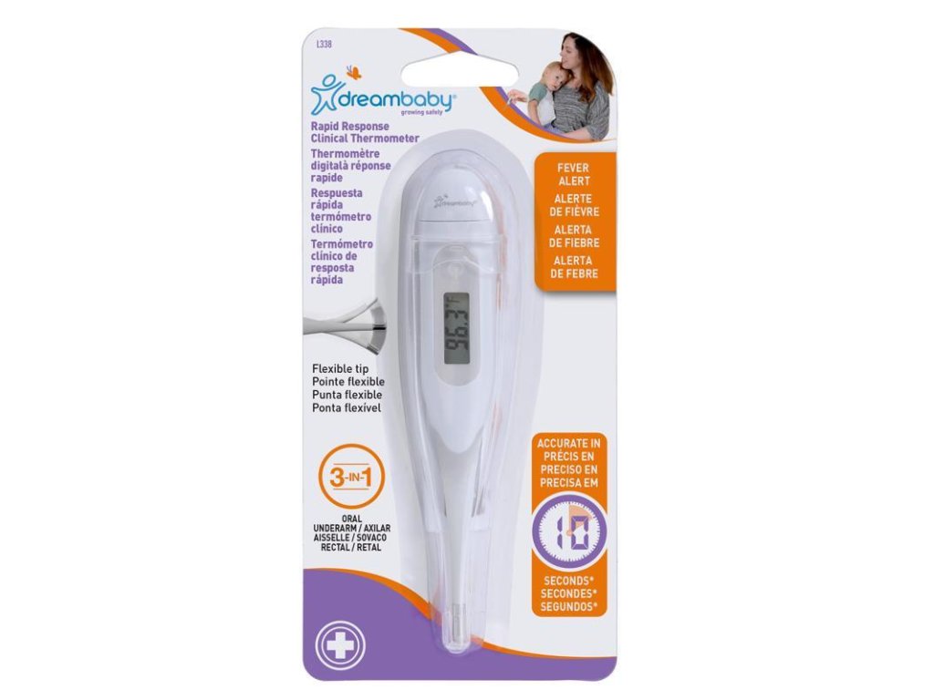 Digitálny teplomer Dreambaby® poskytuje rýchle a presné odčítanie teploty za 30 sekúnd. Výstražný systém proti horúčke pomáha pri odhadovaní výsledku čítania. Ak je zistená horúčka a teplota je vyššia ako 37,6 ° C (99,7 ° F), zaznie rýchle pípnutie.