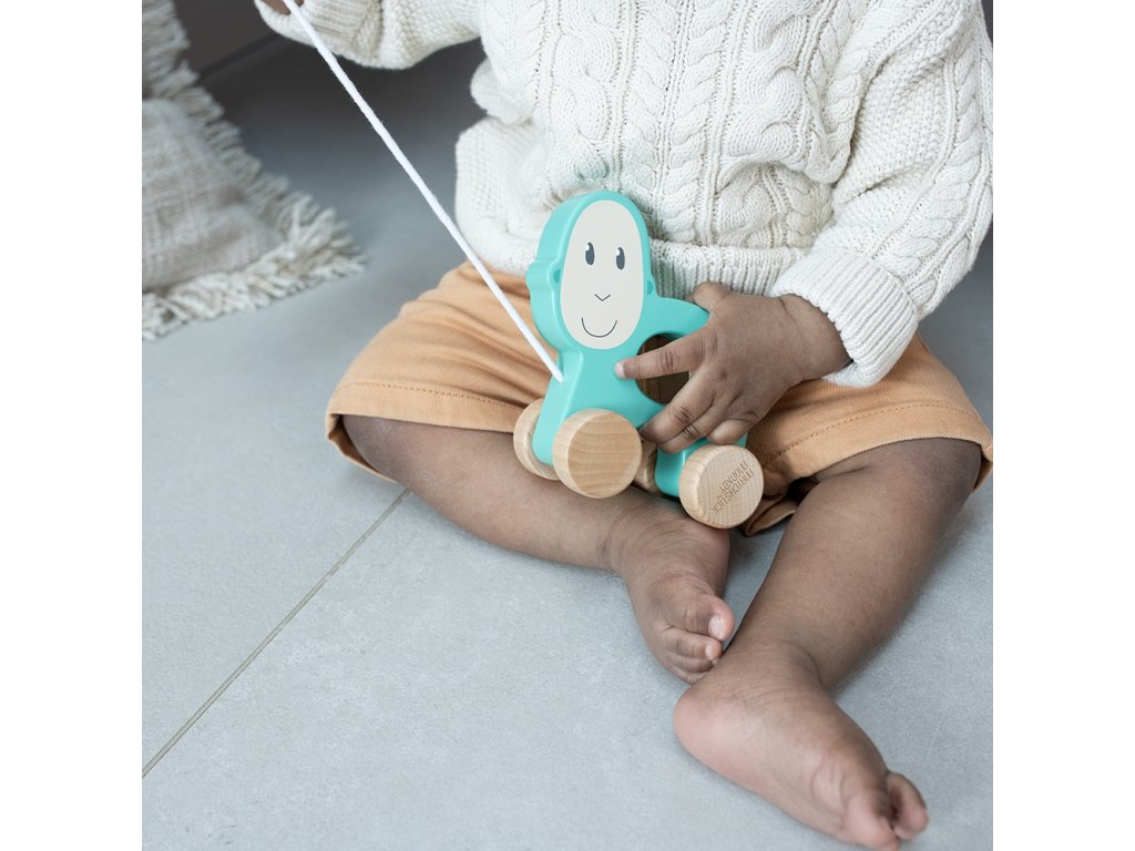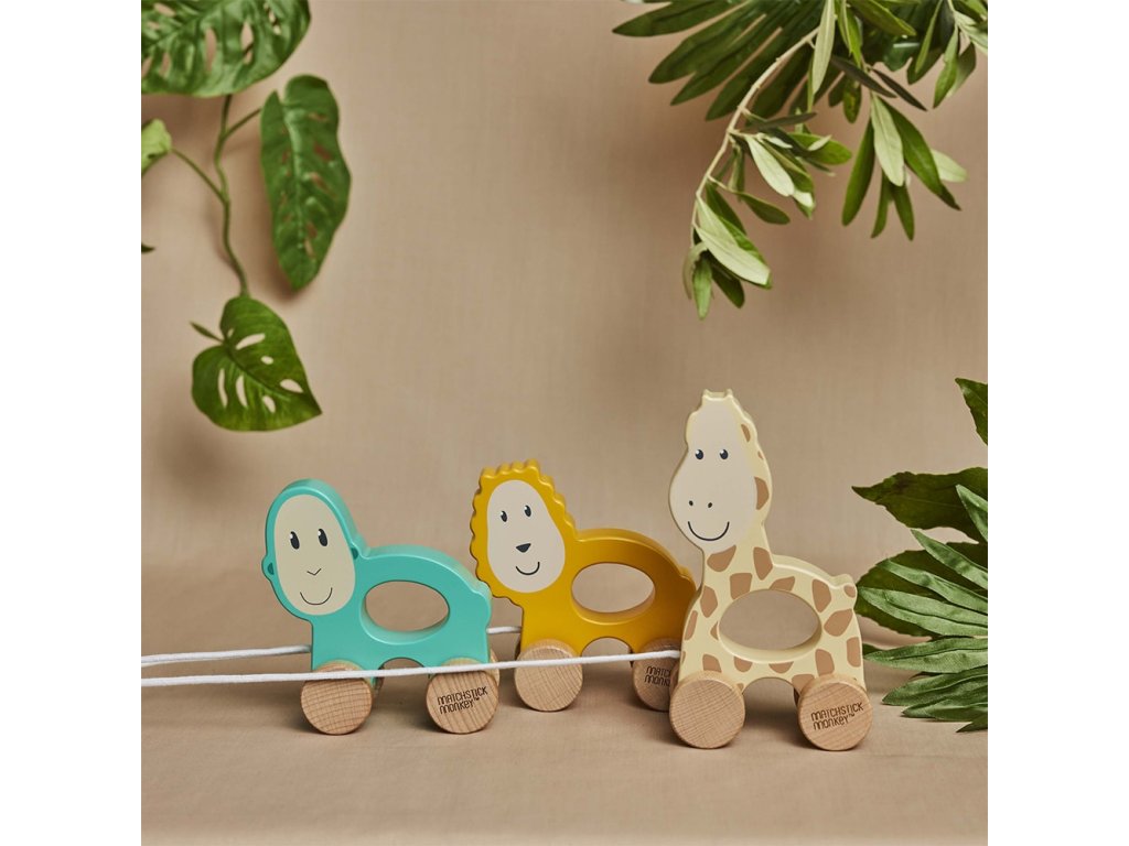 DREVENÁ ŤAHACIA HRAČKA MATCHSTICK MONKEY OPICA