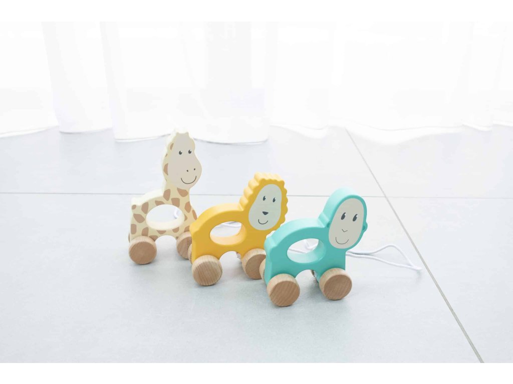 Pretekajte sa, ťahajte alebo tlačte zvieratko po podlahe. Jednoduché uchopenie a držanie vďaka vyrezanému stredovému dizajnu. Podporuje nápaditú a tvorivú hru.