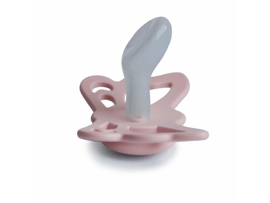 Tvar cumlíkov FRIGG Butterfly pripomína motýľa. Štít so zvlnenými okrajmi má veľké vzduchové otvory pre väčšiu bezpečnosť a jeho okrúhly stred krásne zvýrazňuje eleganciu cumlíkov.