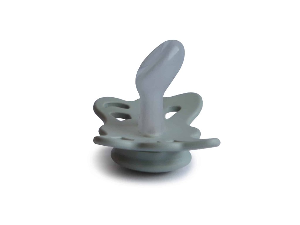 Tvar cumlíkov FRIGG Butterfly pripomína motýľa. Štít so zvlnenými okrajmi má veľké vzduchové otvory pre väčšiu bezpečnosť a jeho okrúhly stred krásne zvýrazňuje eleganciu cumlíkov.
