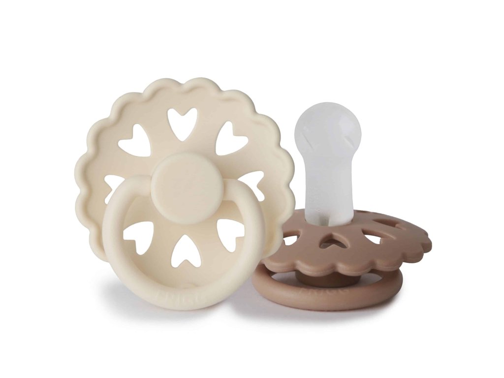 Kolekcia cumlíkov FRIGG Fairytale je inšpirovaná umeleckou tvorbou dánskeho autora H.C. Andersena. Vrúbkované okraje a malé srdiečka vo vnútri štítu napodobňujú jeden z jeho papierových výstrižkov. Každá farba cumlíka je pomenovaná podľa jeho známych rozprávok, ktoré dodávajú cumlíkom nádych fantázie. Tento mimoriadne krásny cumlík, s moderným dizajnom a elegantnými detailmi, upúta pozornosť každej štýlovej mamičky.