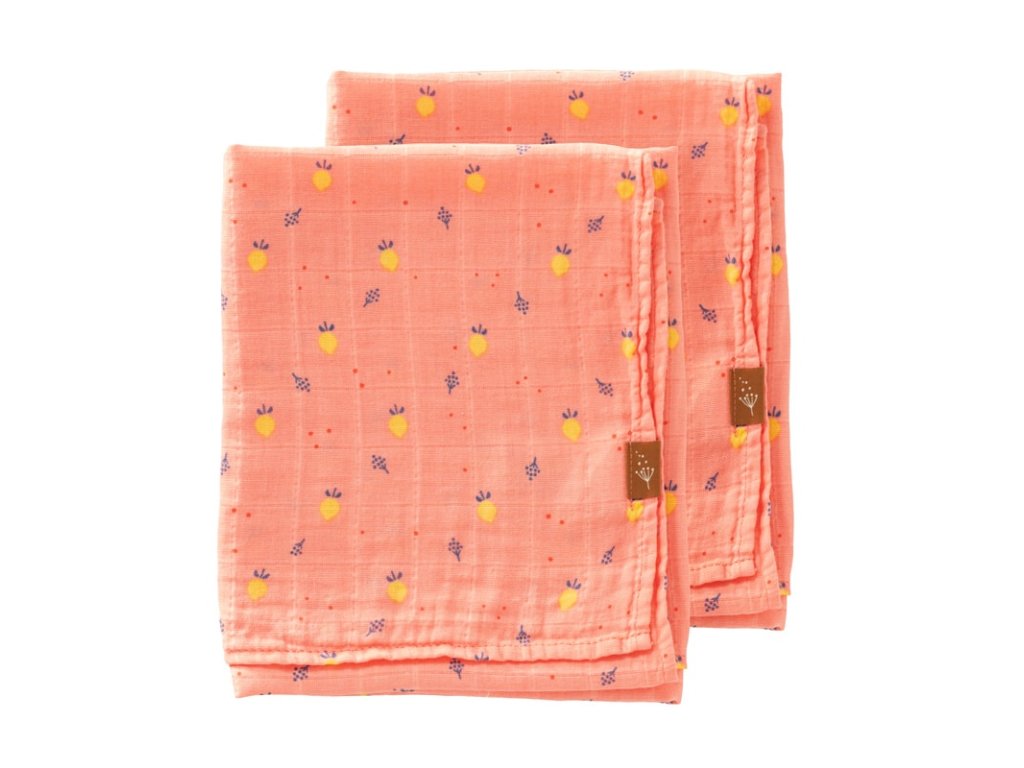 Rozkošná súprava dvoch kusov mušelínových plienok vyrobených z jemne tkanej bavlny s unikátnymi potlačami.