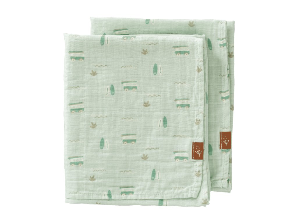 Rozkošná súprava mäkkých zavinovačiek z jemne tkanej bavlny s unikátnymi potlačami. Tieto hydrofilné plienky sú vhodné nielen ako zavinovačka, ale aj ako praktická podložka pri prebaľovaní či podbradník pri kŕmení. Možno prať maximálne na 30°. Všestranný pomocník. Dve plienky v sade. Rozmery 60x70 cm.